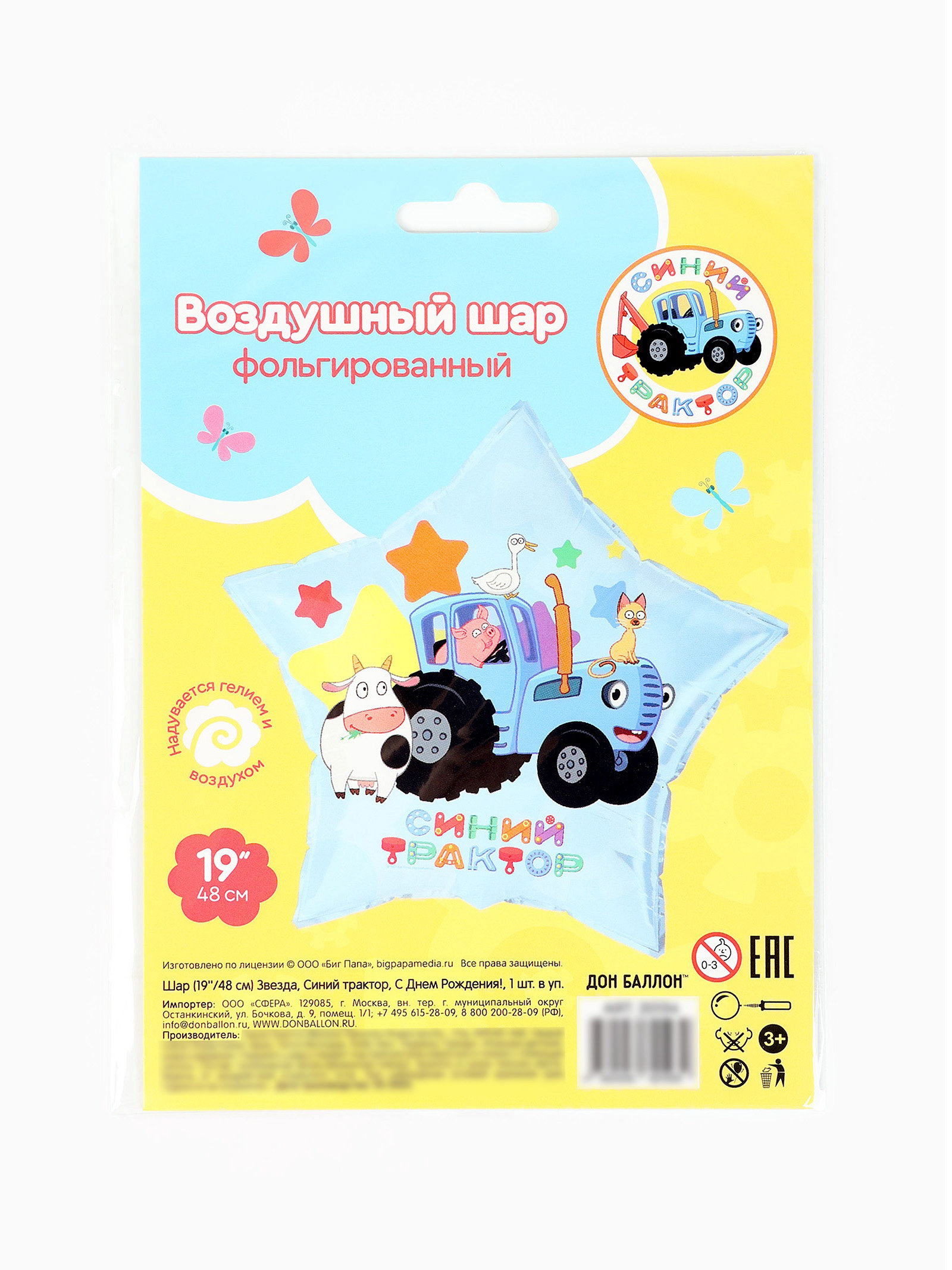 Воздушный шар фольгированный 19""Синий трактор, С Днем Рождения!", FALALI, Китай