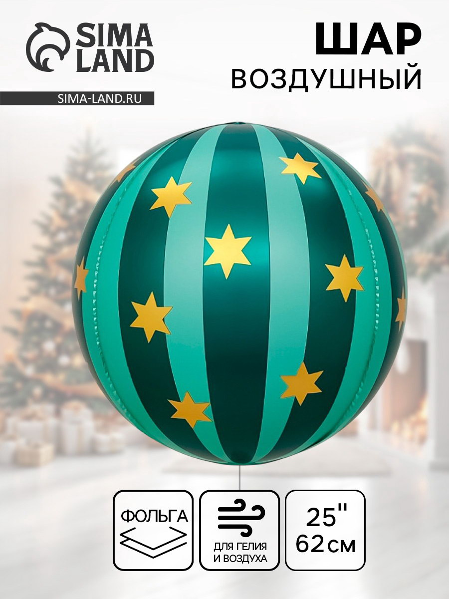 Воздушный шар фольгированный 25"Сфера "Новгодний шар" цвет зеленый, FALALI, Китай