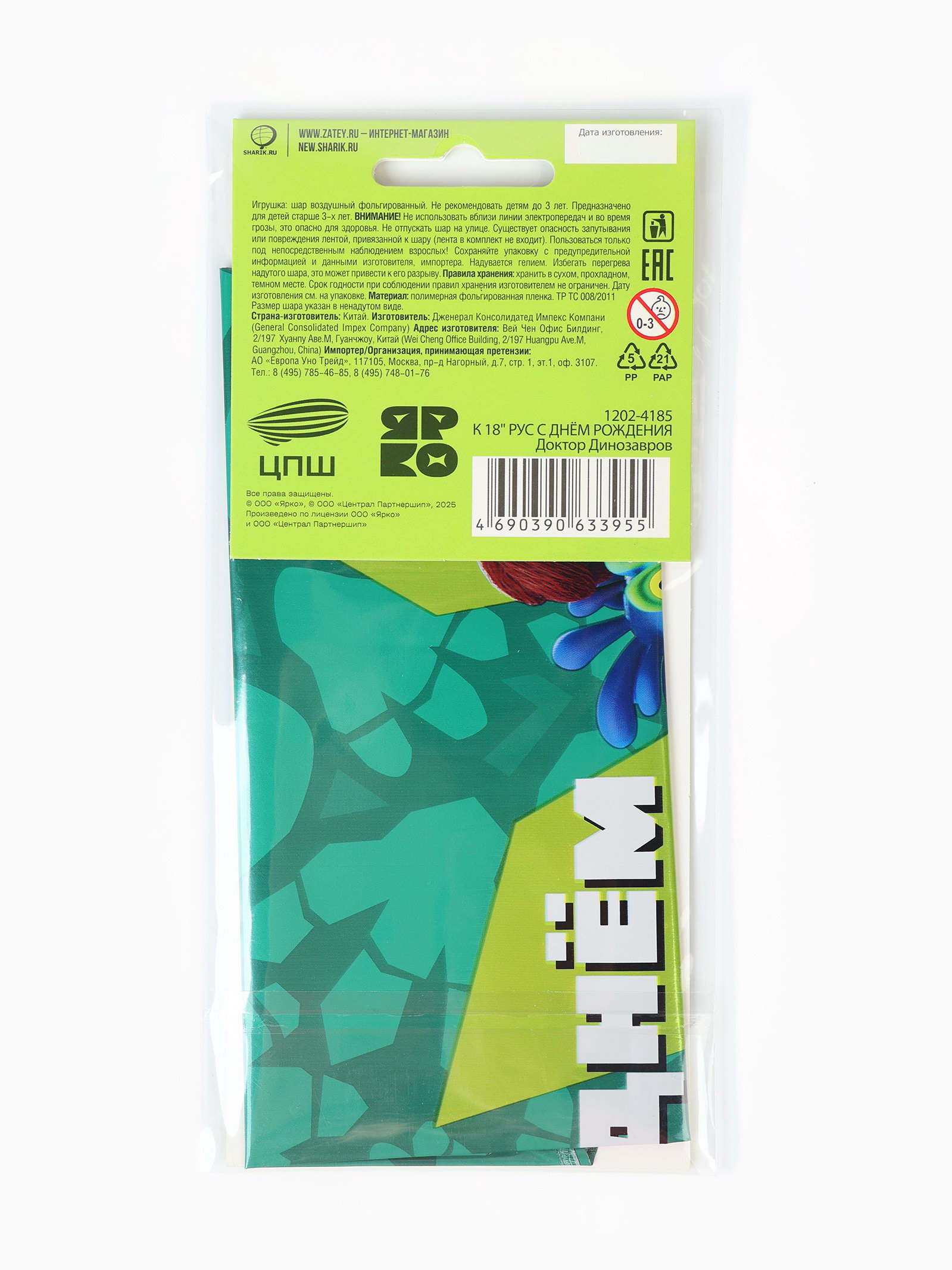 Воздушный шар фольгированный 18""Доктор Динозавров", Весёлая Затея, Китай