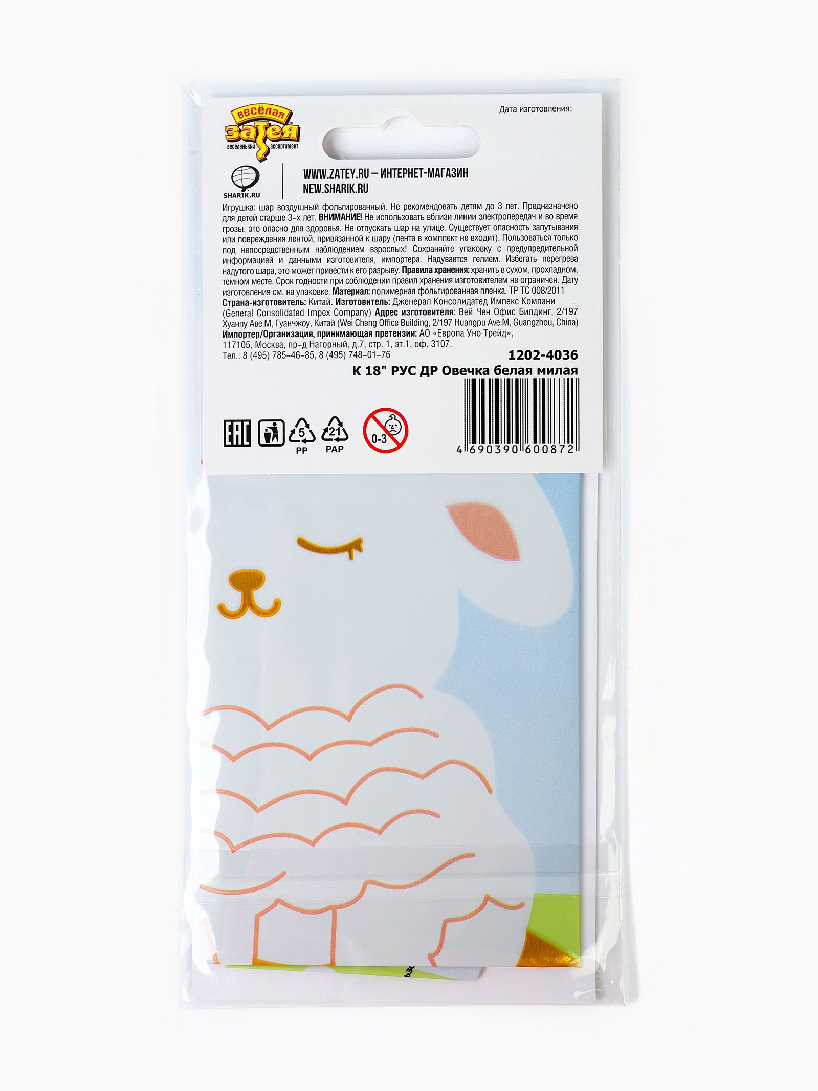 Надувка шара: Воздухом, Гелием Тематика рисунка: День Рождения, Детская Размер упаковки: 10 x 0.3 x 20.5 см. tnved: 9503010000 Температурное ограничение: Нет Вид шара: Круг Диаметр, дюйм: 18 Индивидуальная упаковка: Да Наличие клапана: Да Набор: Нет Рисунок: Да Оттенок: Глянец Персонажи: Баран, овца Адресат: Имениннику/Имениннице Цвет: Разноцветный Тематика праздника: День рождения Для кого: Унисекс | ||