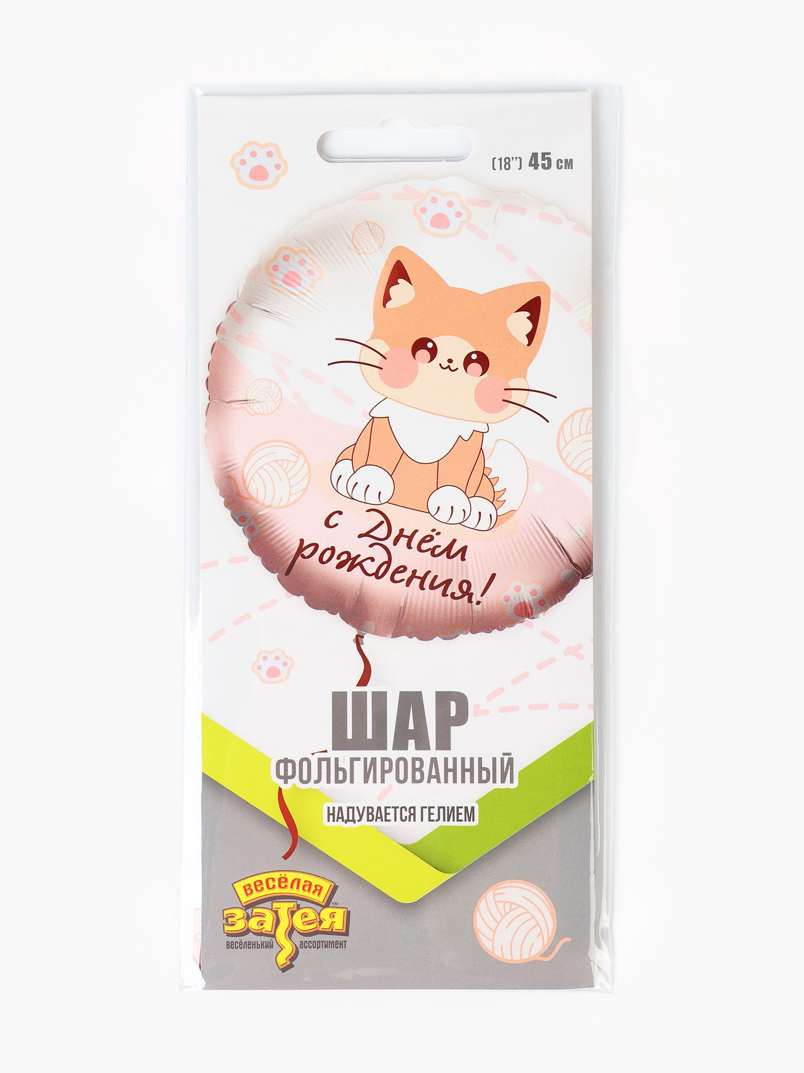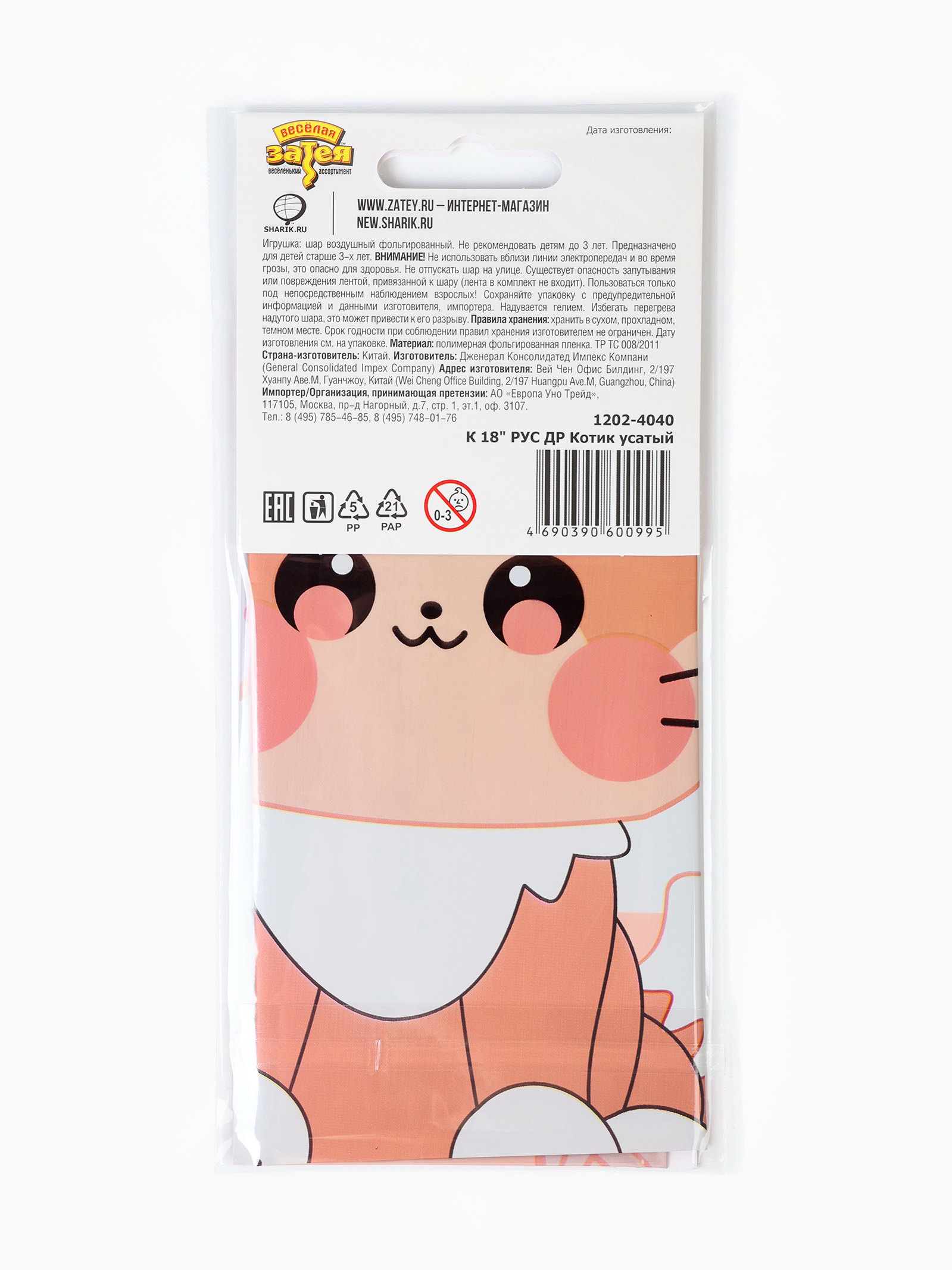 Воздушный шар фольгированный 18""Котик усатый", Весёлая Затея, Китай