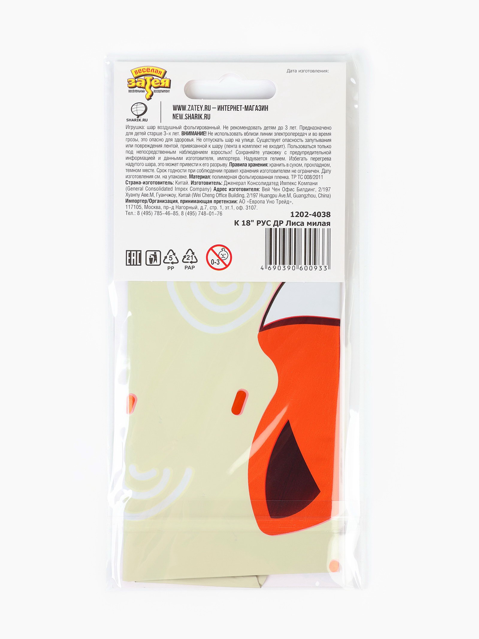 Воздушный шар фольгированный 18""Милая лиса", Весёлая Затея, Китай