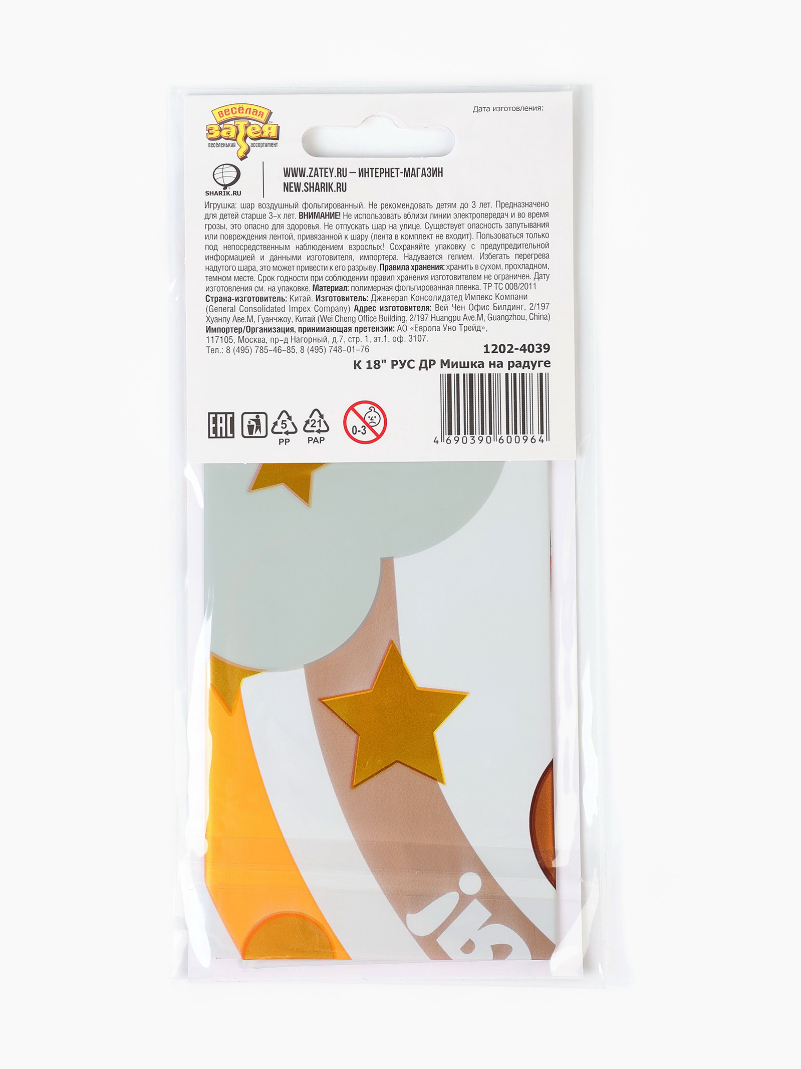 Воздушный шар фольгированный 18""Мишка на радуге", Весёлая Затея, Китай