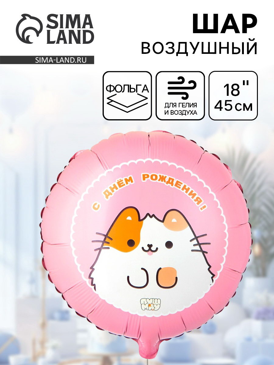 Воздушный шар фольгированный 18""ДР ПушМяу", Весёлая Затея, Китай