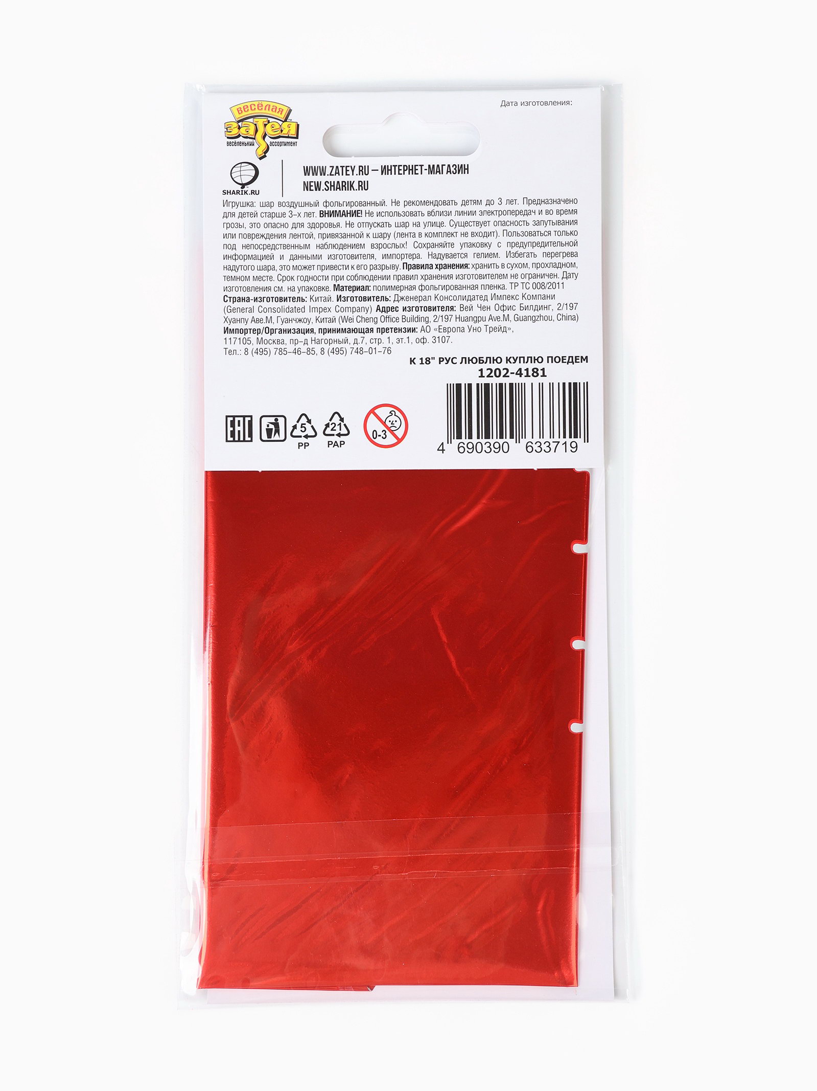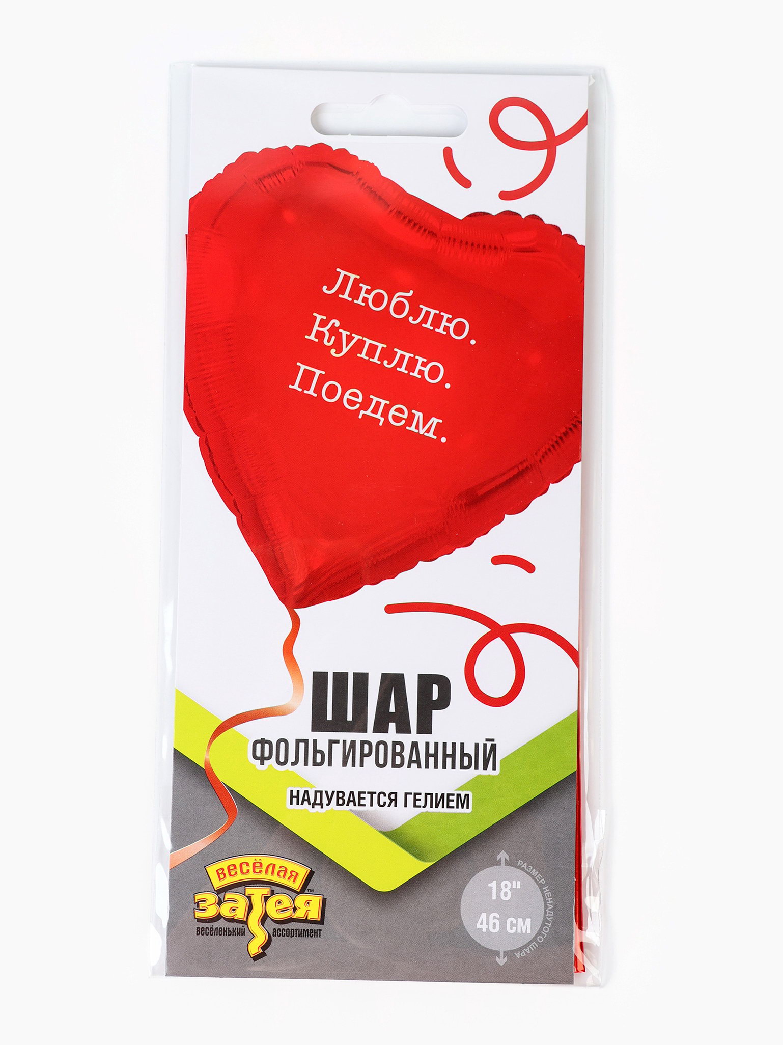 Воздушный шар фольгированный 18""Люблю Куплю Поедем", Весёлая Затея, Китай