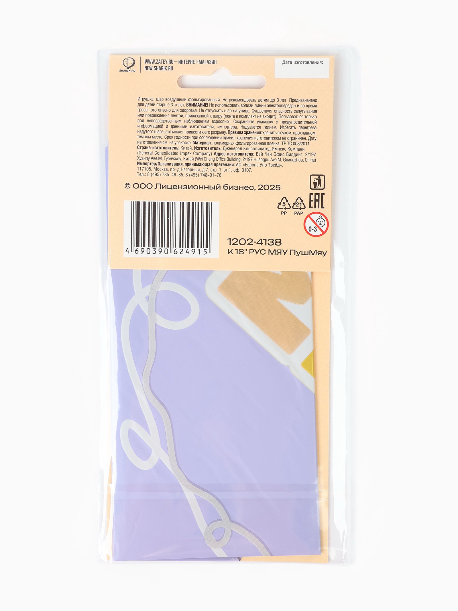 Воздушный шар фольгированный 18""Мяу ПушМяу", Весёлая Затея, Китай