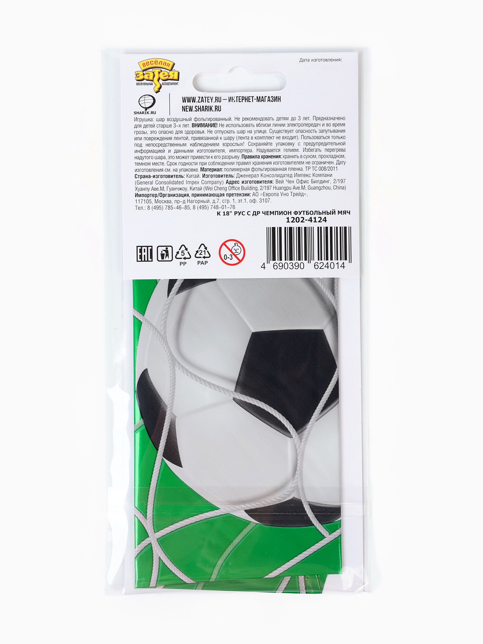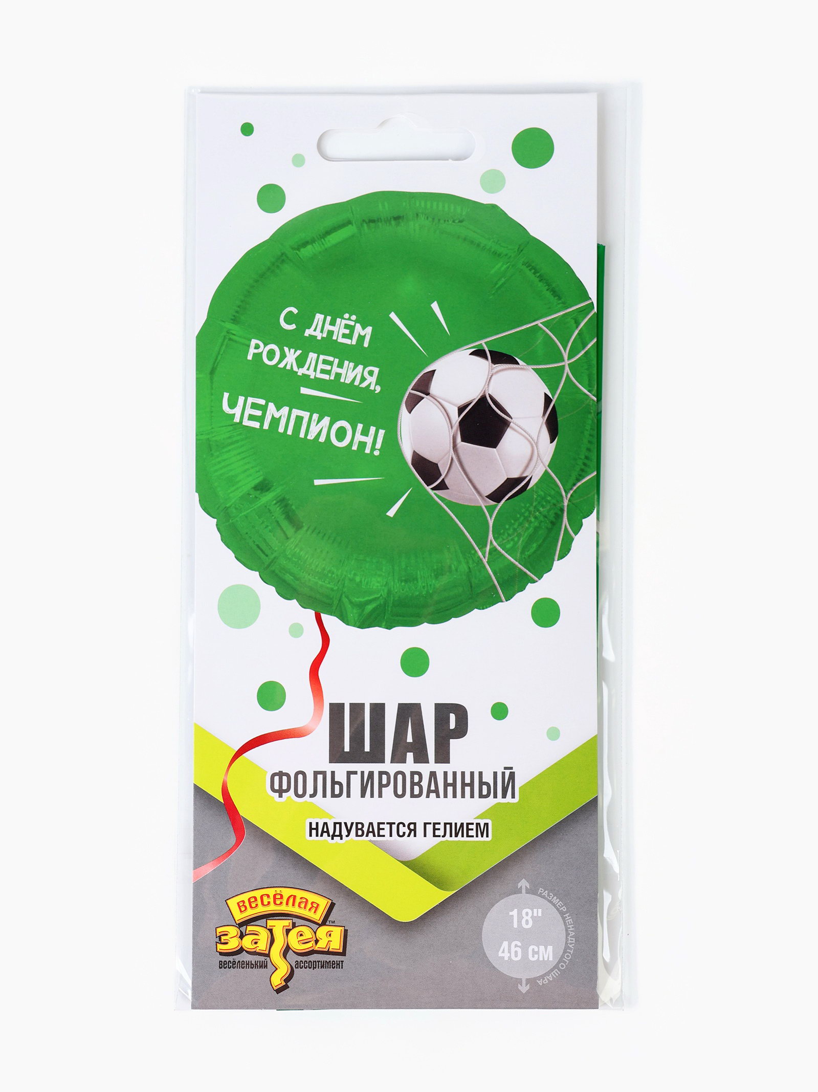 Воздушный шар фольгированный 18""С ДР Чемпион, футбольный мяч", Весёлая Затея, Китай
