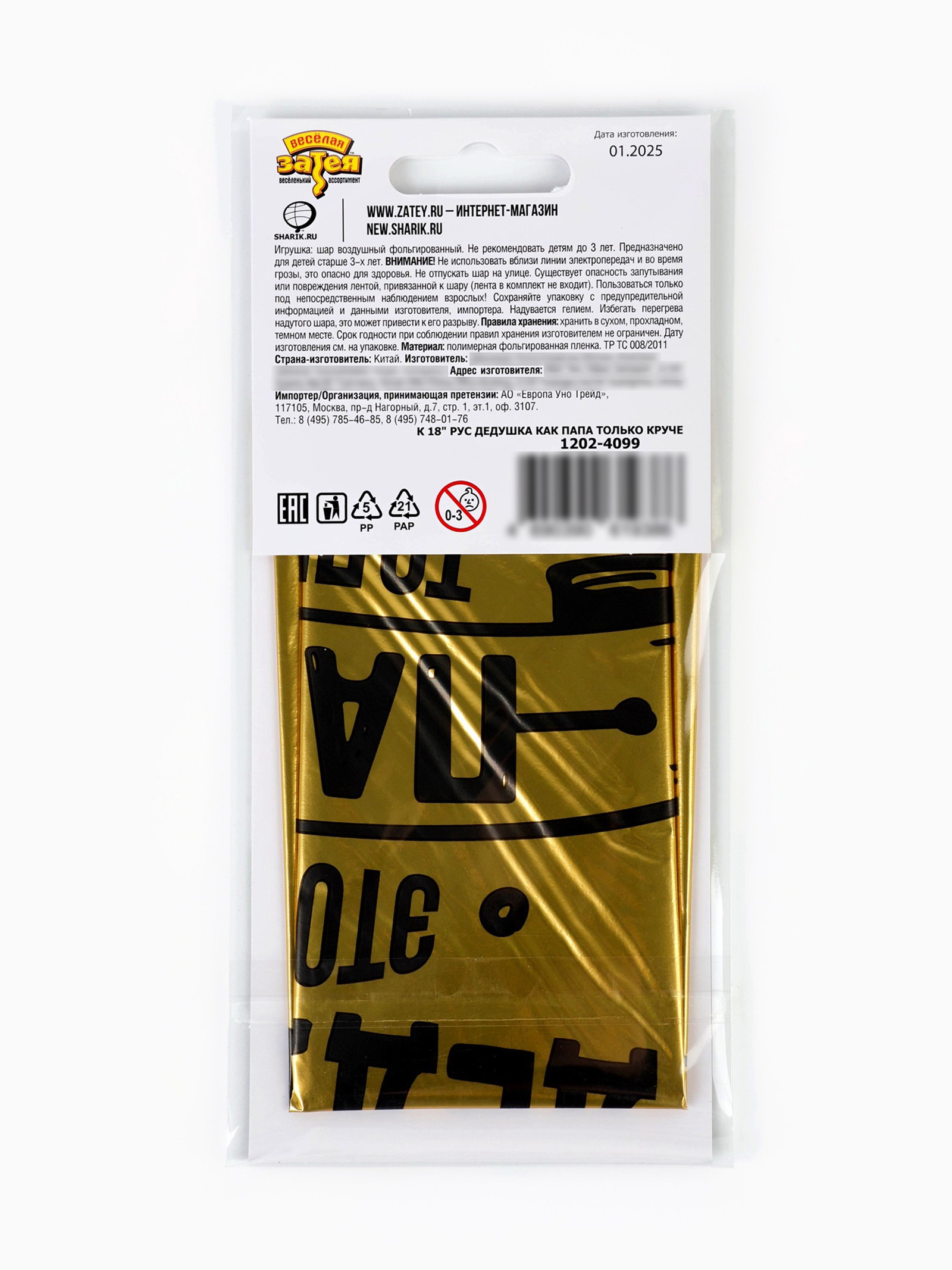 Надувка шара: Воздухом, Гелием Размер упаковки: 10 x 0.3 x 20.5 см. tnved: 9503010000 Температурное ограничение: Нет Диаметр, дюйм: 18 Наличие клапана: Да Адресат: Дедушке Набор: Нет Рисунок: Да Вид шара: Круг Оттенок: Глянец Тематика рисунка: Комплименты Индивидуальная упаковка: Да Цвет: Золотистый | ||