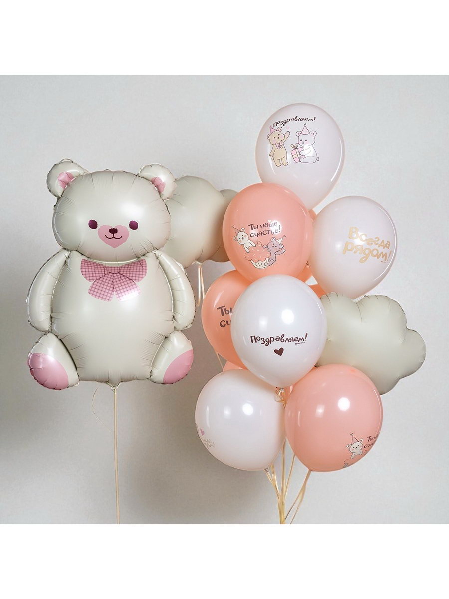 Воздушный шар фольгированный 35""Мишка с бантом", FALALI, Китай