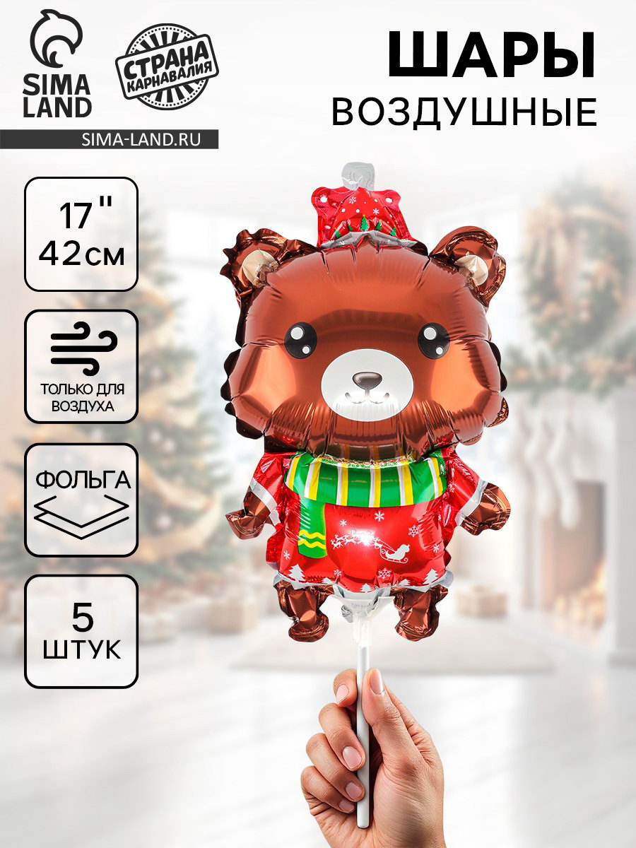 Воздушные шары фольгированные 17""Новогодний мишка", 5 шт., для палочек, FALALI, Китай