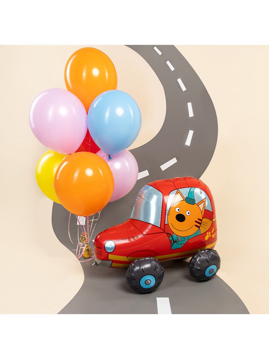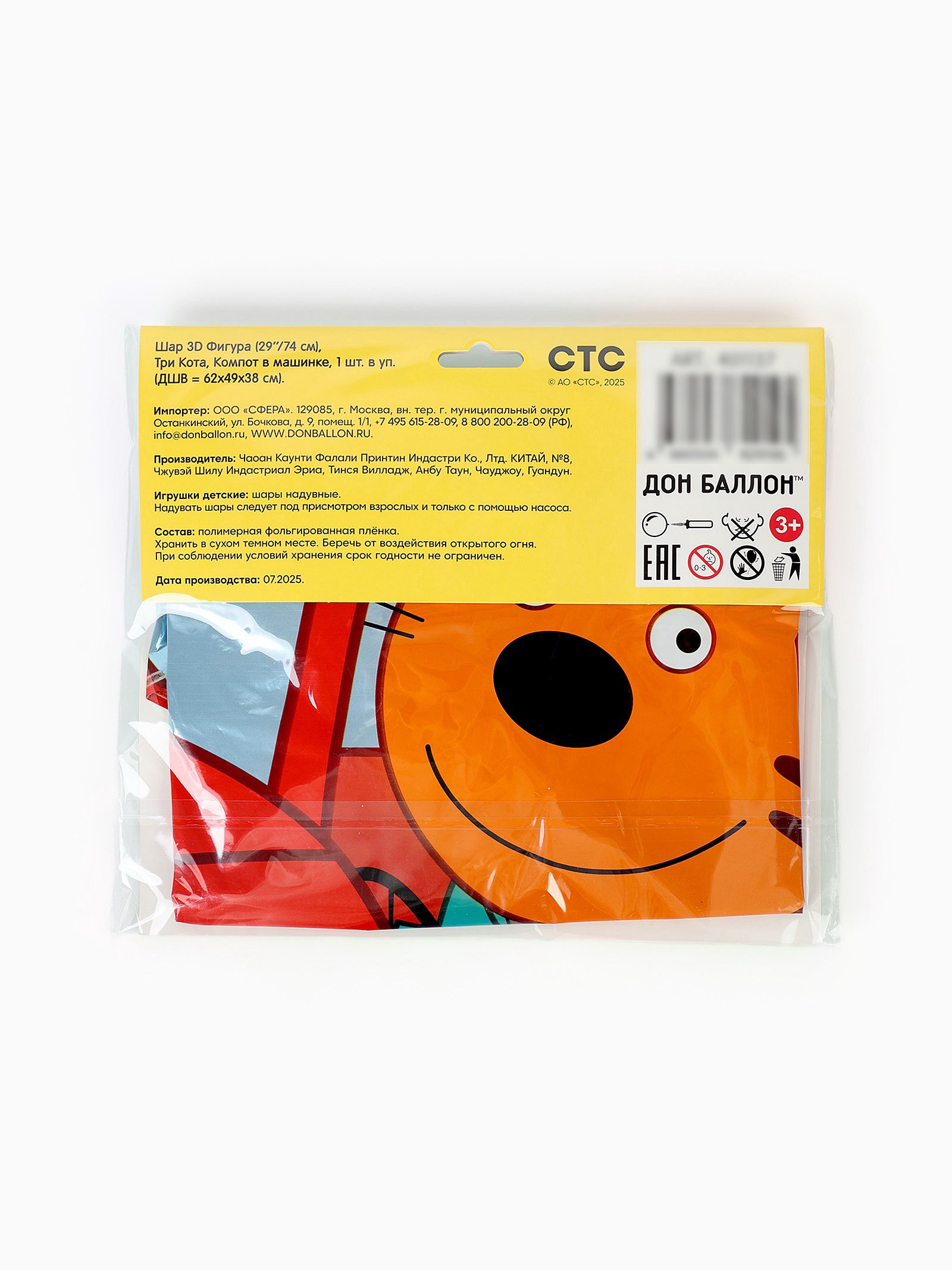 Воздушный шар фольгированный 3D 29""Три Кота. Компот в машине", только под воздух, FALALI, Китай