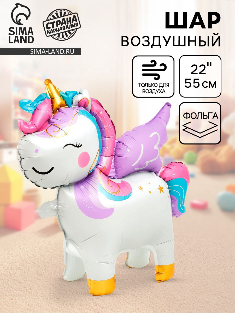 Воздушный шар фольгированный 22""Единорог", фигура под воздух, 22x56x0.1 см., Страна Карнавалия, Китай