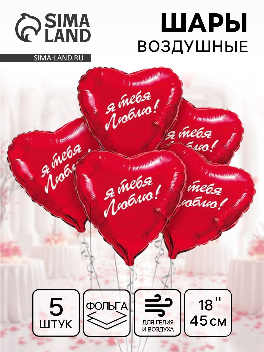 Воздушный шар фольгированный 18""Я тебя люблю", сердце, 5 шт., Flexmetal, Испания