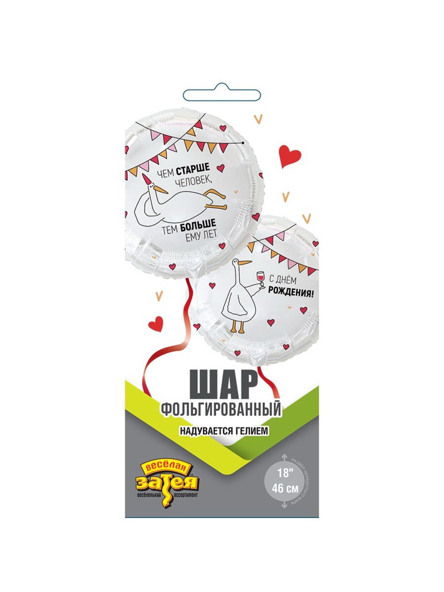 Воздушный шар фольгированный 18""Чем старше человек. Гусь", Весёлая Затея, Китай