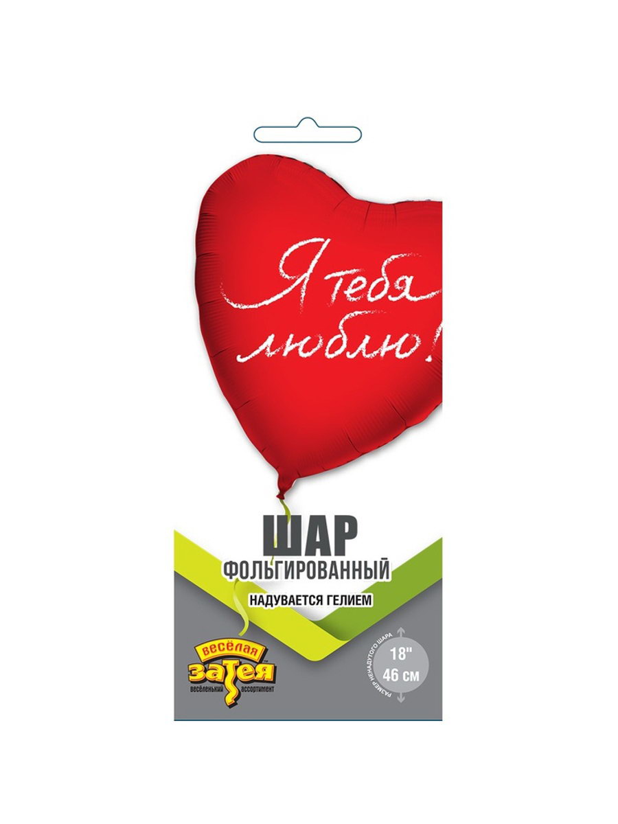 Воздушный шар фольгированный 18""Я тебя люблю. Сердце", Весёлая Затея, Китай