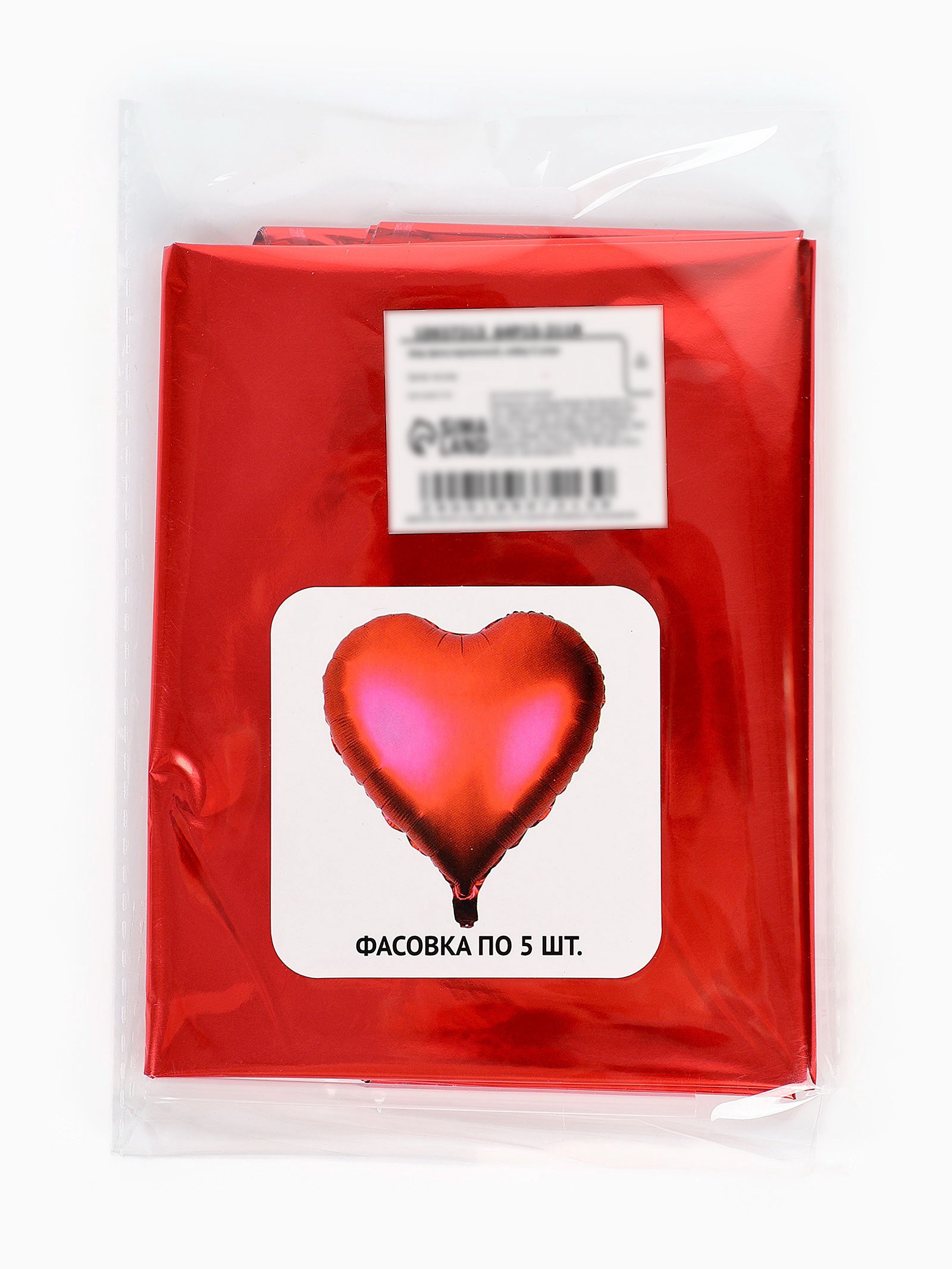 Воздушный шар фольгированный 18""Сердце", красный, набор 5 штук, 15x15x0.3 см., Страна Карнавалия, Китай
