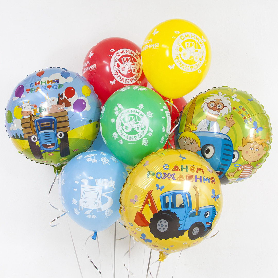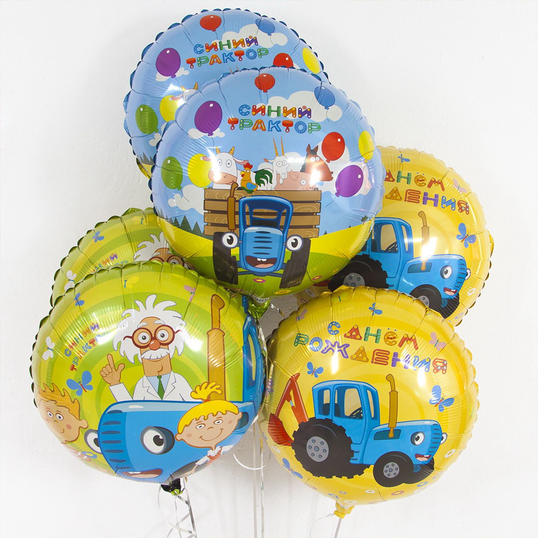 Воздушный шар фольгированный 18""Синий трактор! С Днём Рождения!", набор 5 шт., Flexmetal, Испания