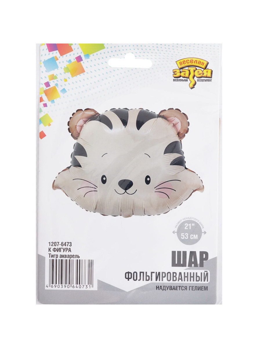 Воздушный шар фольгированный 21""Тигр", акварель, Весёлая Затея, Китай