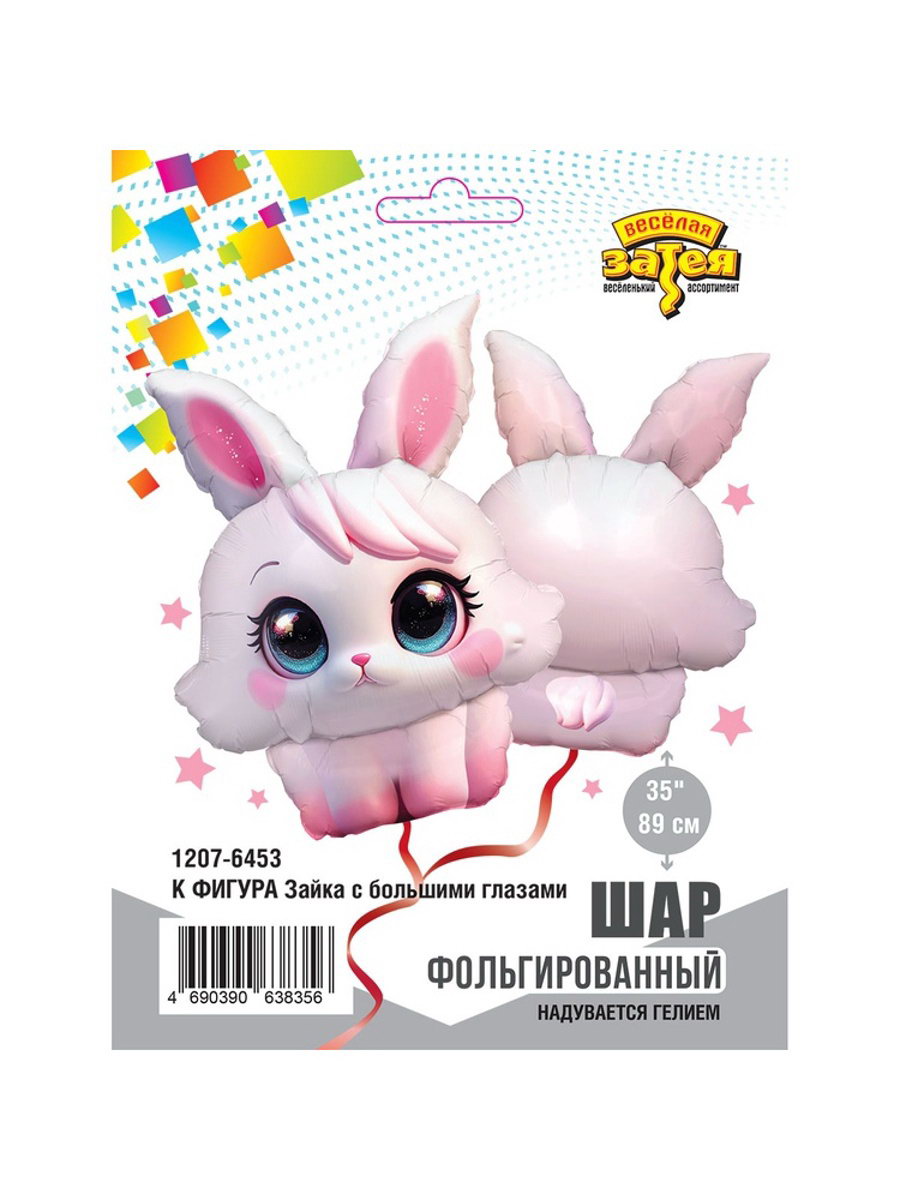 Воздушный шар фольгированный 35""Зайка с большим глазами", Весёлая Затея, Китай