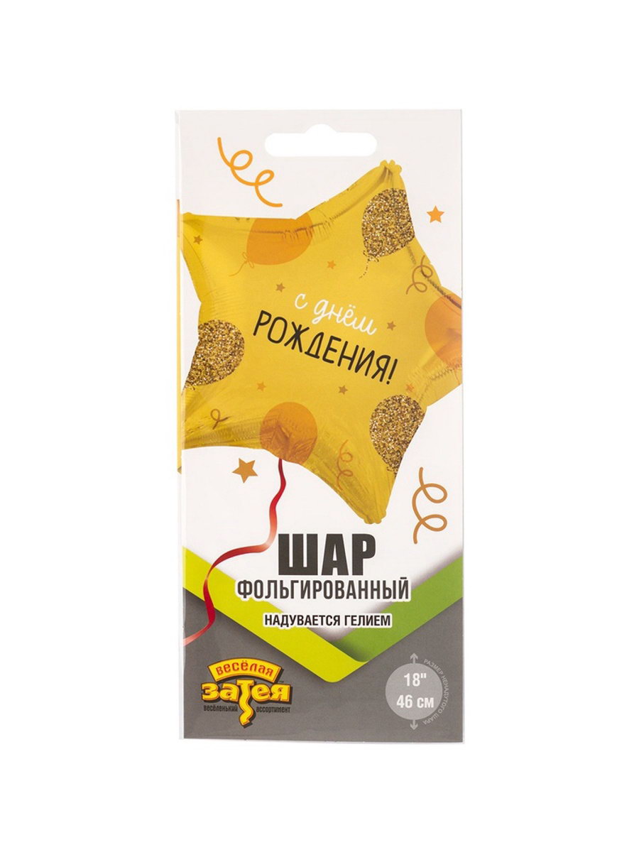 Воздушный шар фольгированный 18""С днём рождения. Звезда", Весёлая Затея, Китай
