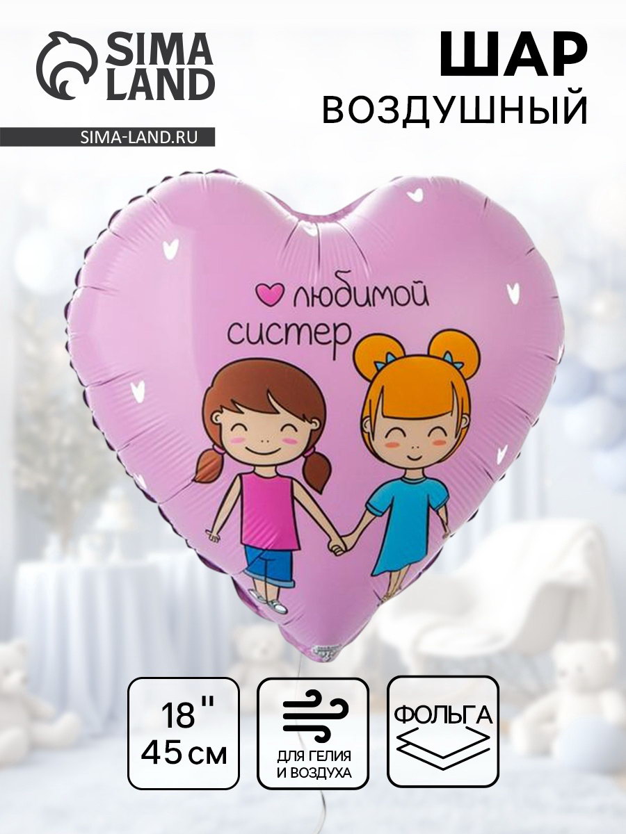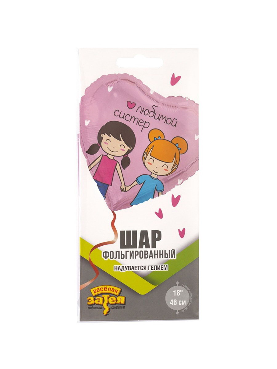 Воздушный шар фольгированный 18""Любимой систер. Сердце", Весёлая Затея, Китай