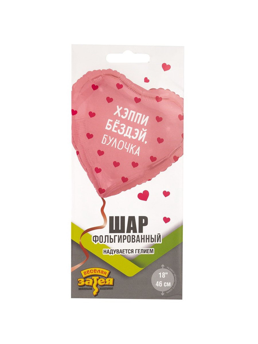 Воздушный шар фольгированный 18""Хэппи бёздей булочка. Сердце", Весёлая Затея, Китай