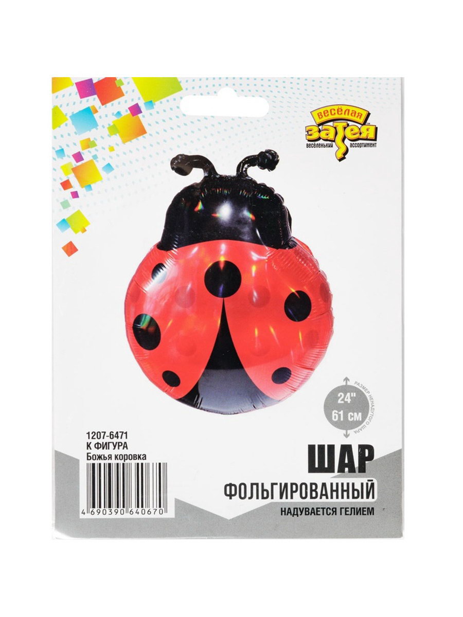Воздушный шар фольгированный 24""Божья коровка", Весёлая Затея, Китай
