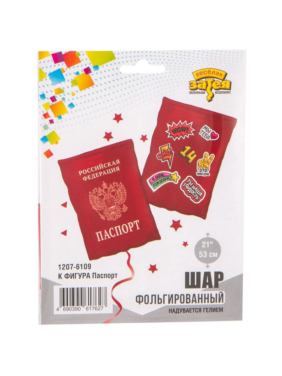 Воздушный шар фольгированный 21""Паспорт", Весёлая Затея, Китай