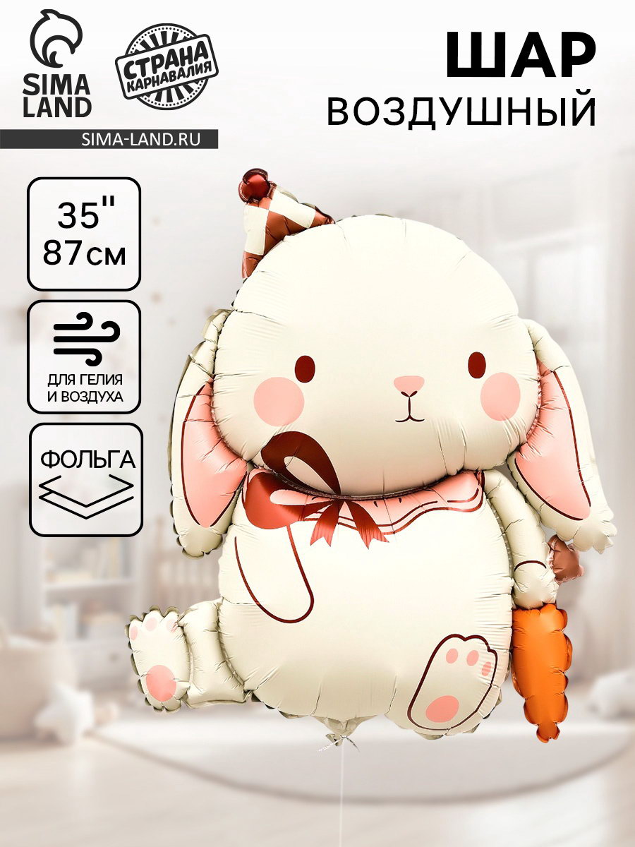 Воздушный шар фольгированный 35""Кролик", матовый, 71.5x88x0.1 см., Страна Карнавалия, Китай