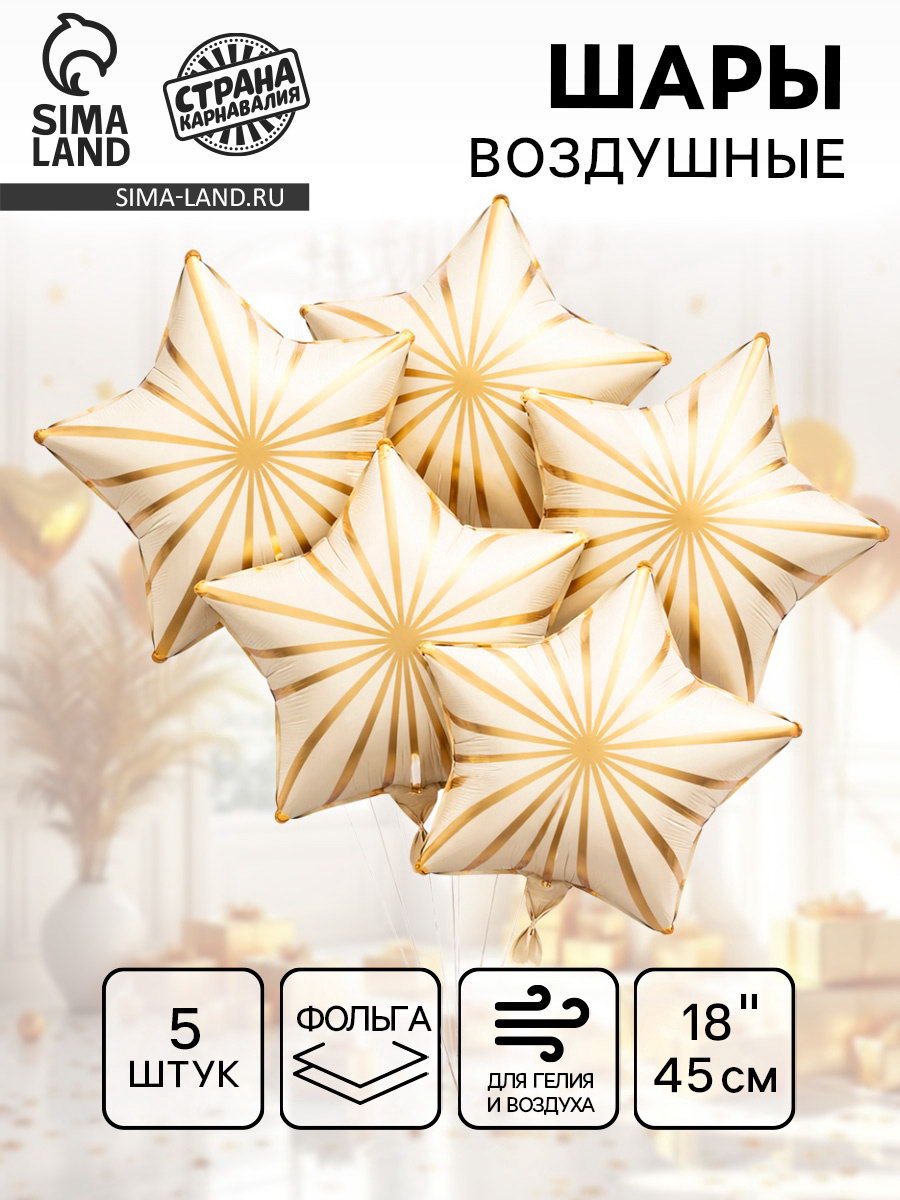 Воздушный шар фольгированный 18""Грани. Звезда", набор 5 шт., белый сатин, 45x45x0.1 см., Страна Карнавалия, Китай