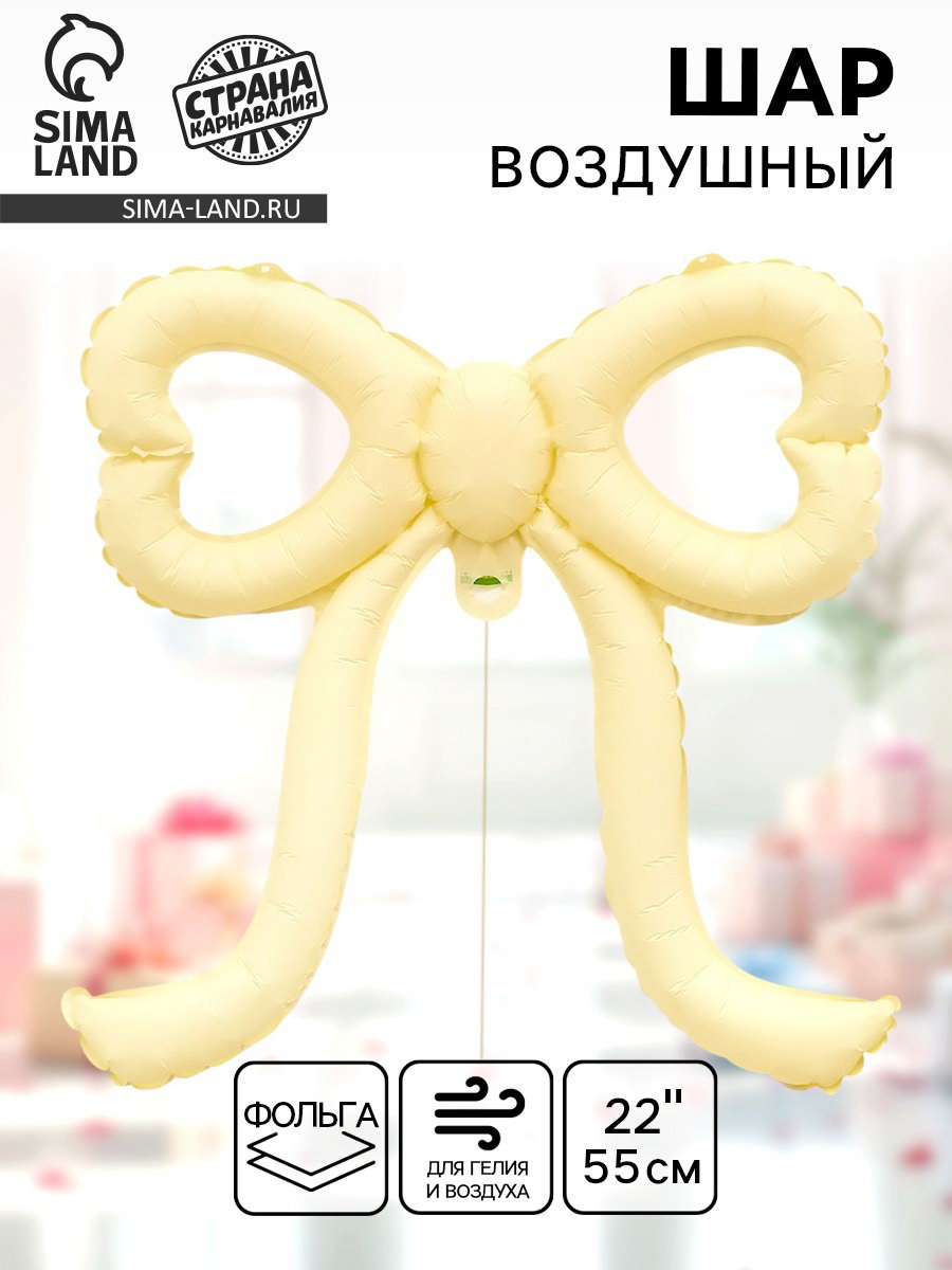 Воздушный шар фольгированный 22""Бант", кремовый, 17x13x0.1 см., Страна Карнавалия, Китай