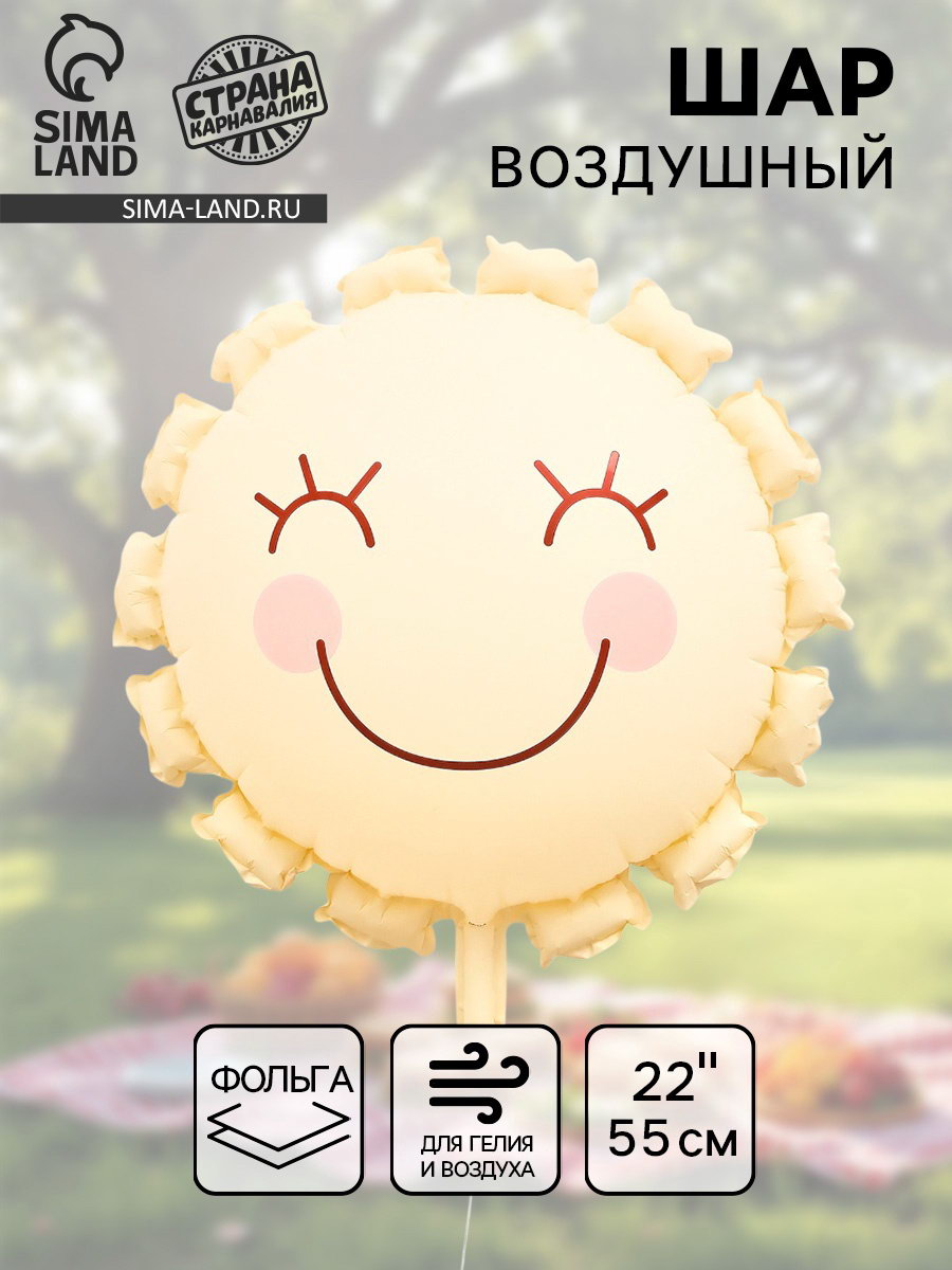 Воздушный шар фольгированный 22""Солнышко", кремовый, 55x55x0.1 см., Страна Карнавалия, Китай
