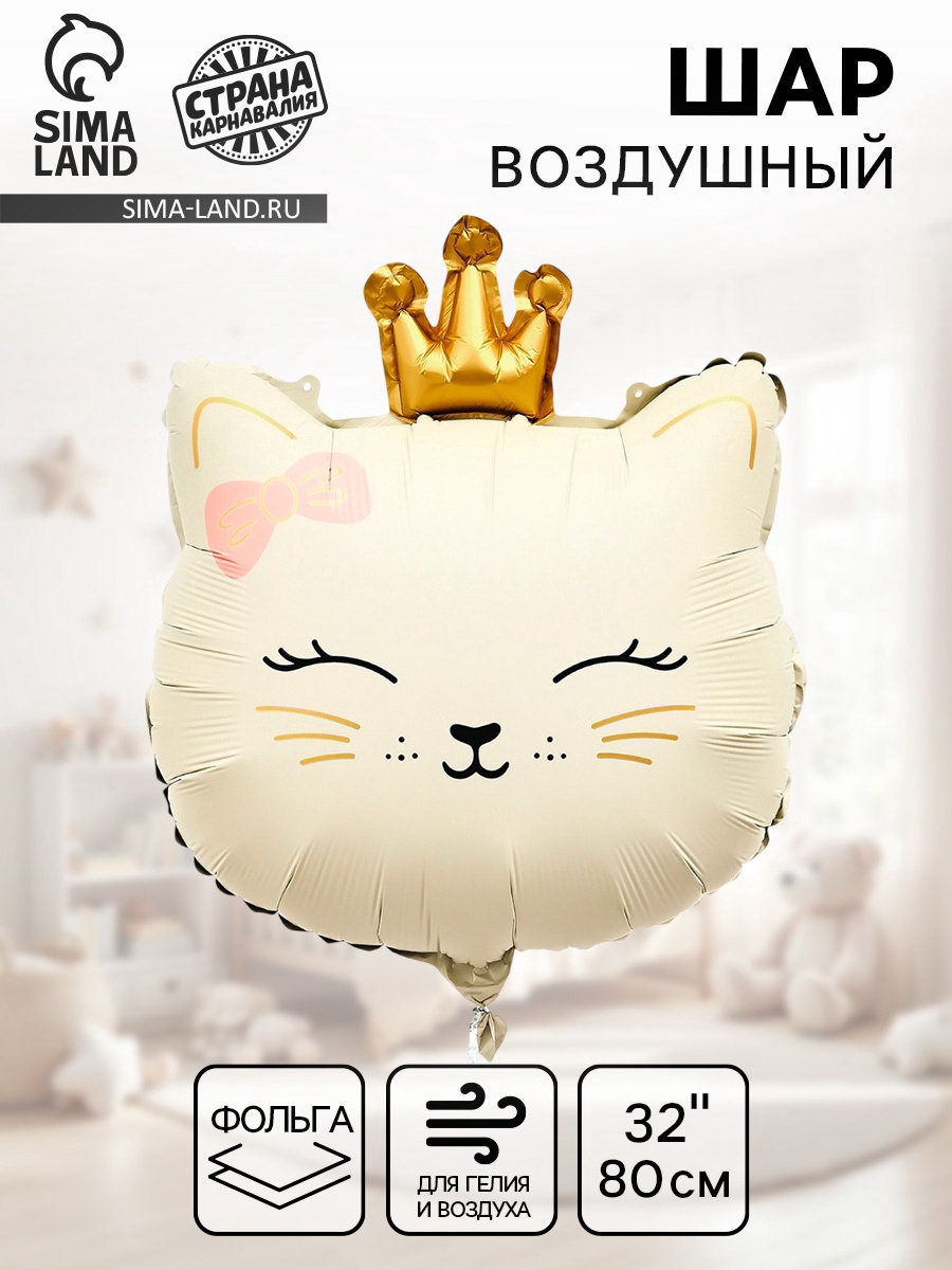 Воздушный шар фольгированный 32""Кошечка с короной", кремовый, 17x13x0.1 см., Страна Карнавалия, Китай