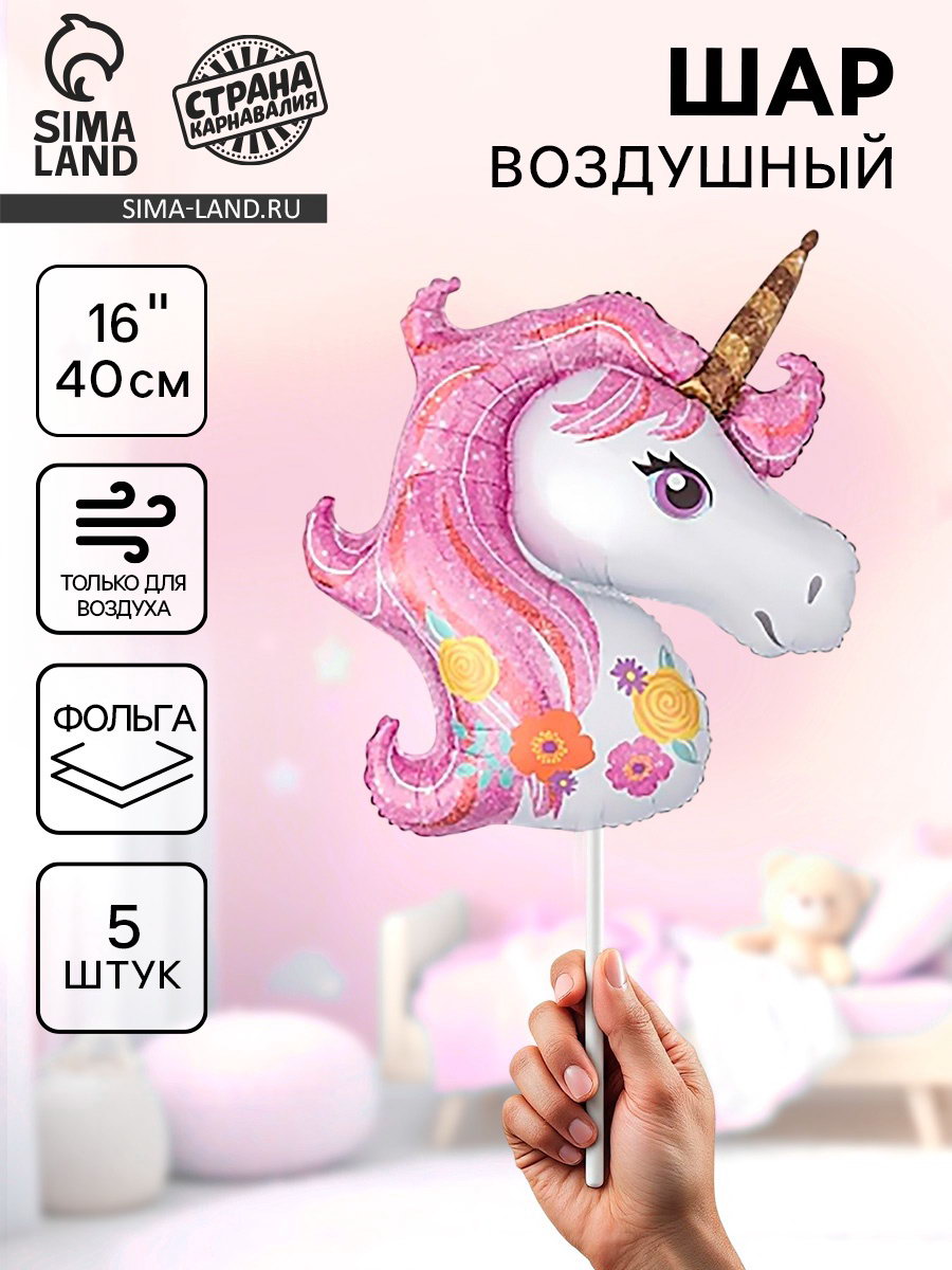 Воздушный шар фольгированный 16""Единорог", набор 5 шт., 15x15x0.5 см., Страна Карнавалия, Китай