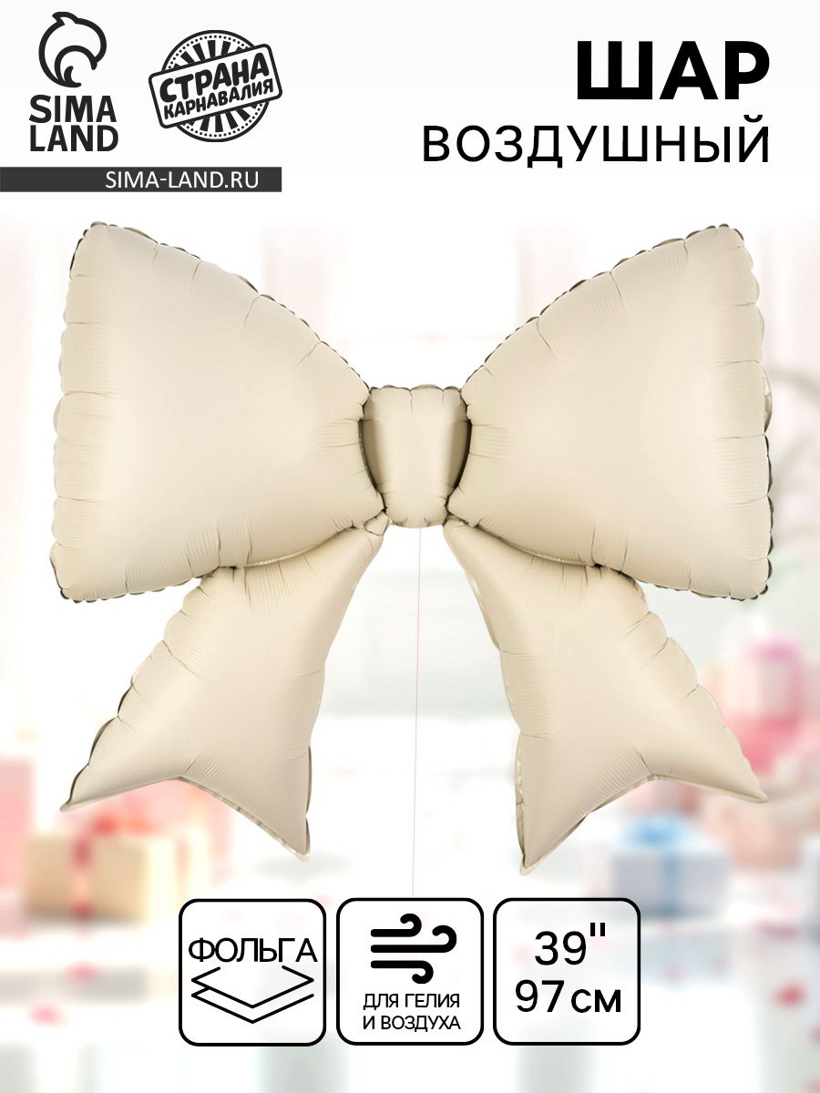 Воздушный шар фольгированный 39""Бантик", кремовый, 13x20x0.5 см., Страна Карнавалия, Китай