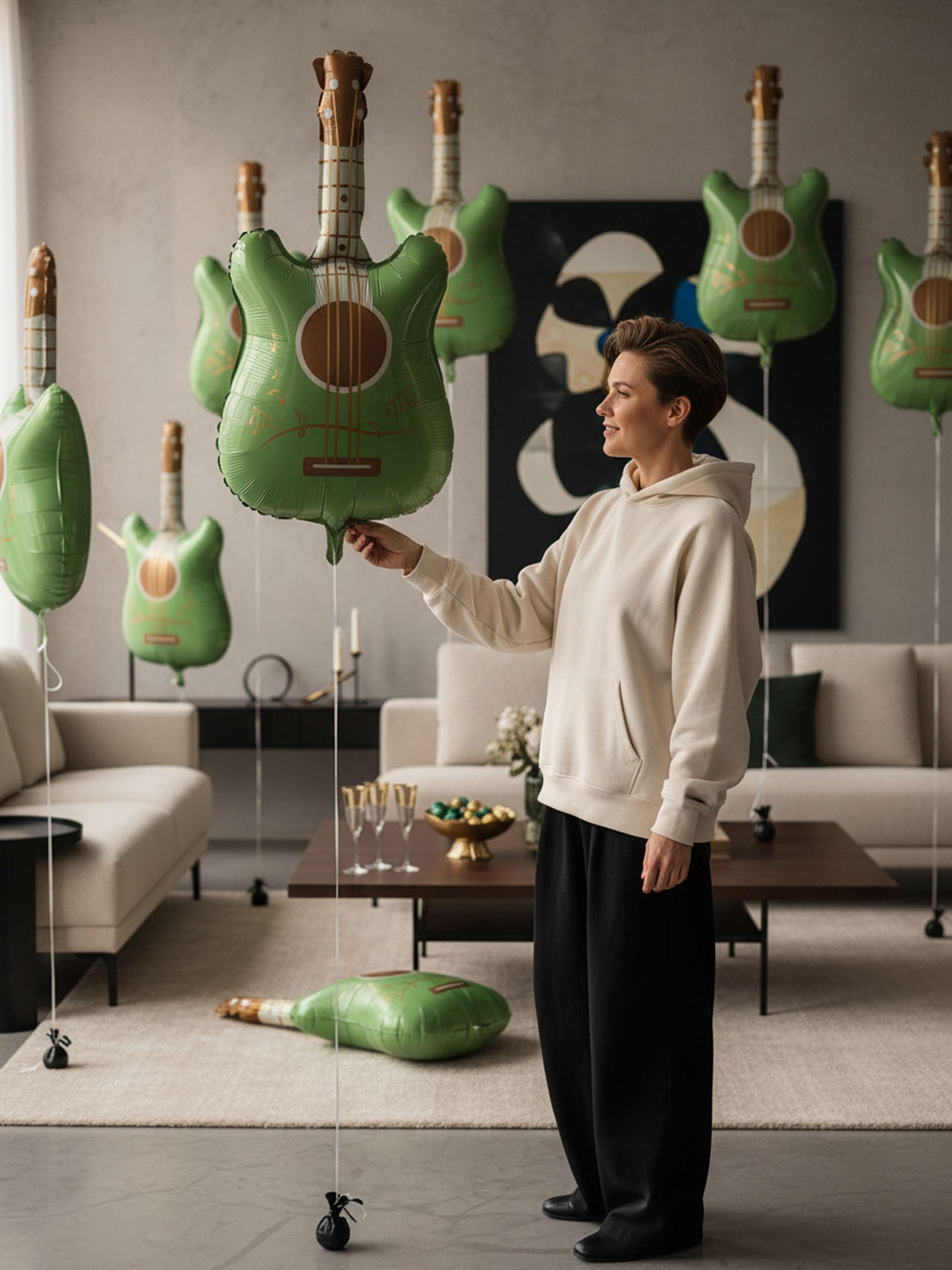 Воздушный шар фольгированный 35"Зелёная гитара", 13x17x0.2 см., Страна Карнавалия, Китай