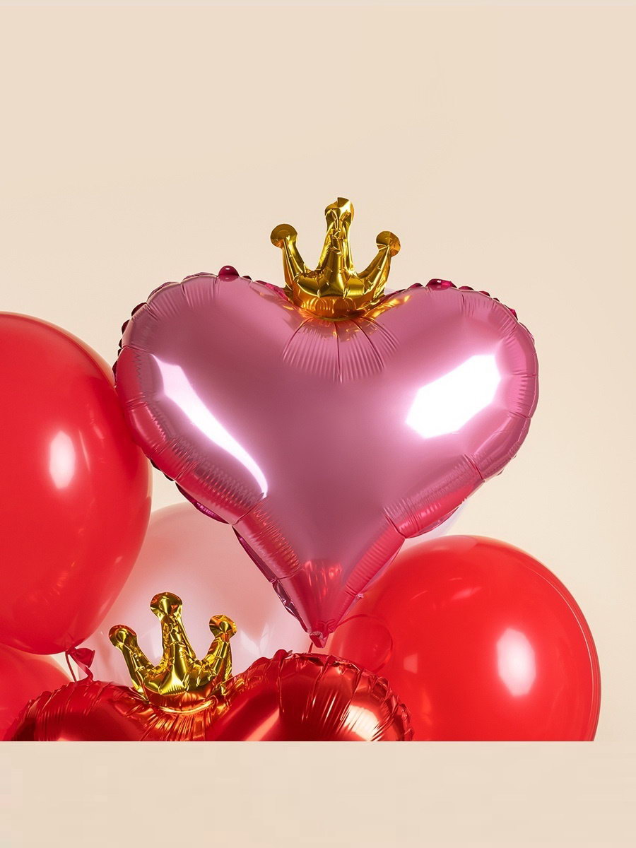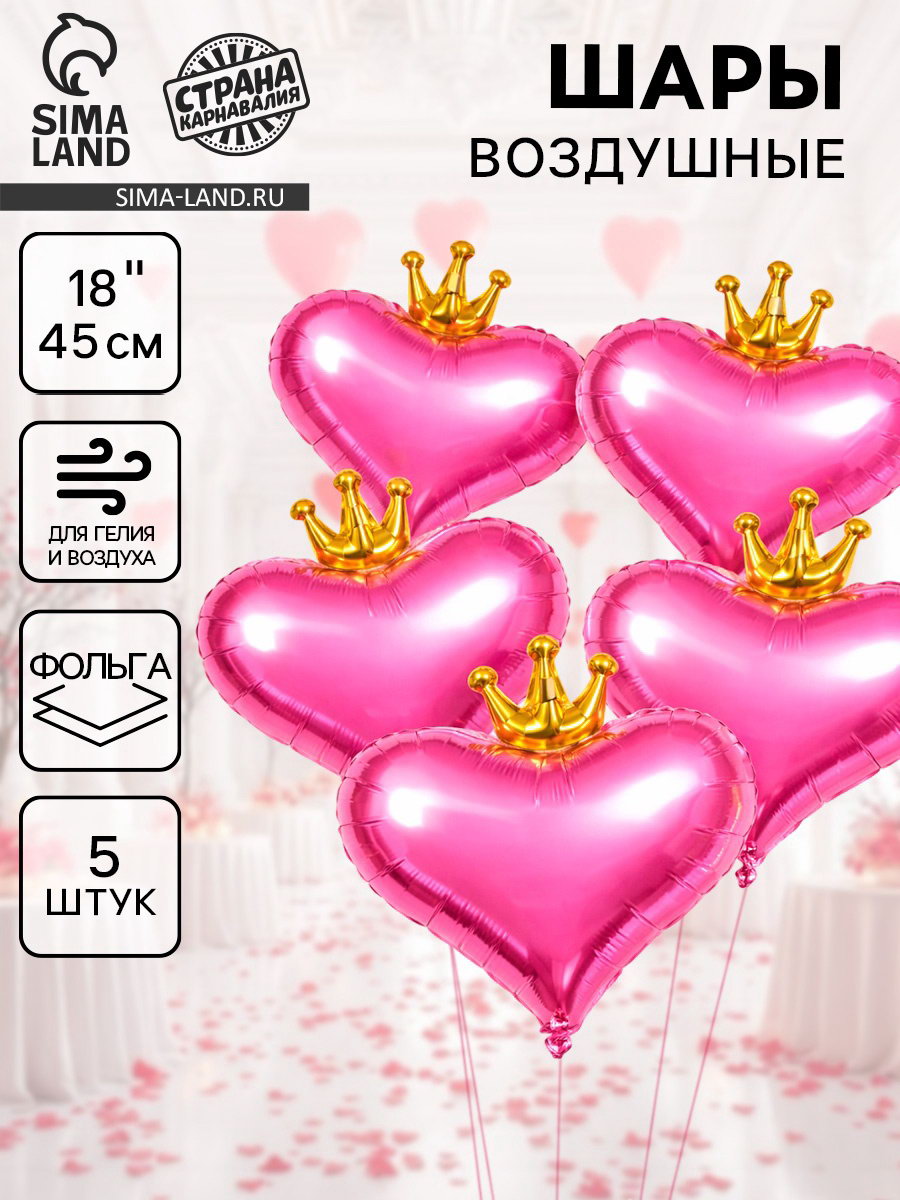 Воздушные шары фольгированные 18""Сердце с короной", 5 шт., 48x55x0.1 см., Страна Карнавалия, Китай