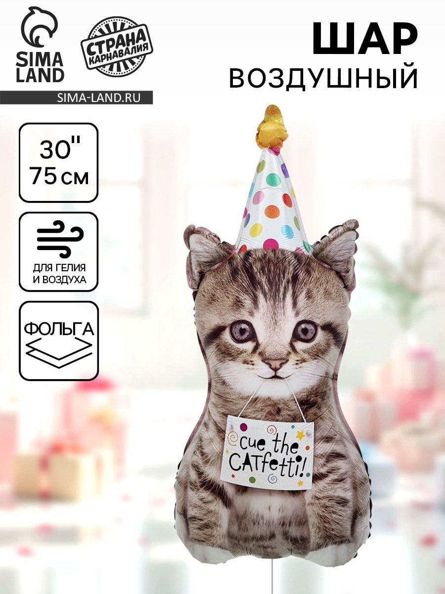 Воздушный шар фольгированный 30""Котёнок в колпачке", 12x16x0.5 см., Страна Карнавалия, Китай