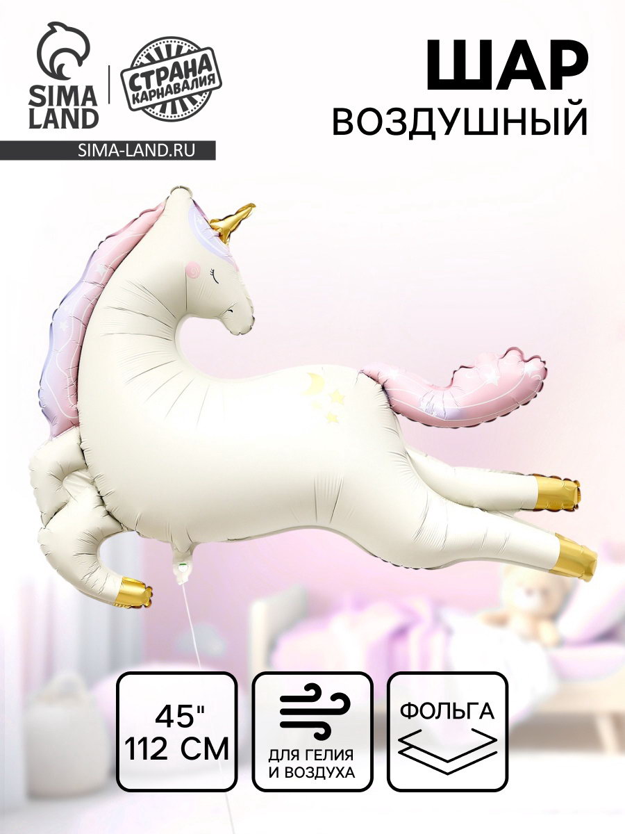 Воздушный шар фольгированный 45""Нежный единорог", 13x17x0.2 см., Страна Карнавалия, Китай