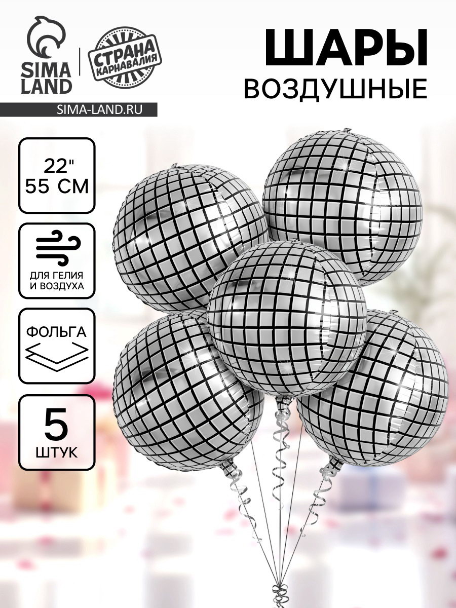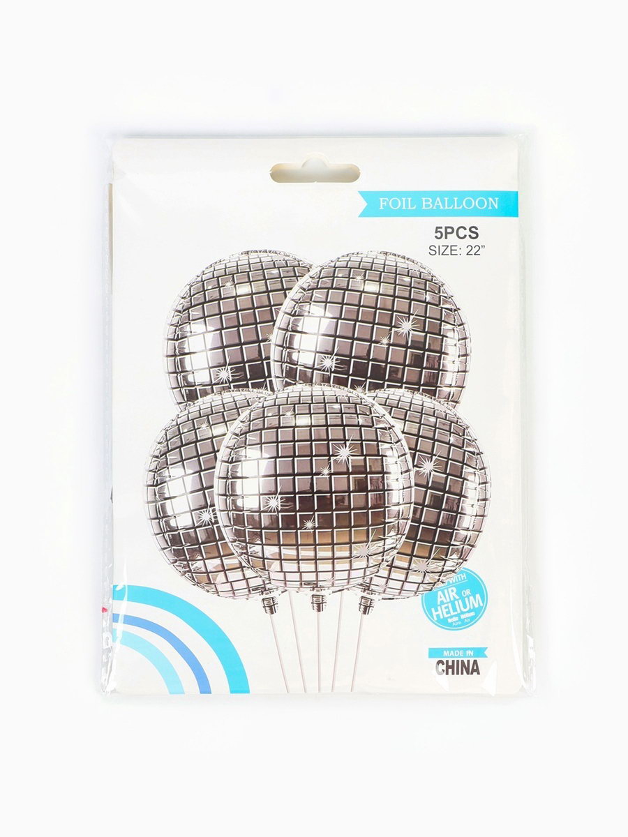 Воздушный шар фольгированный 22""Диско - шар", набор 5 шт., 16x21x1 см., Страна Карнавалия, Китай