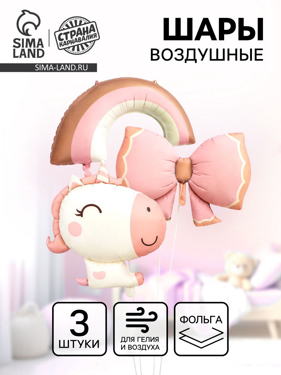 Воздушные шары фольгированные "Милый единорог", набор 3 шт., 16x21x1 см., Страна Карнавалия, Китай