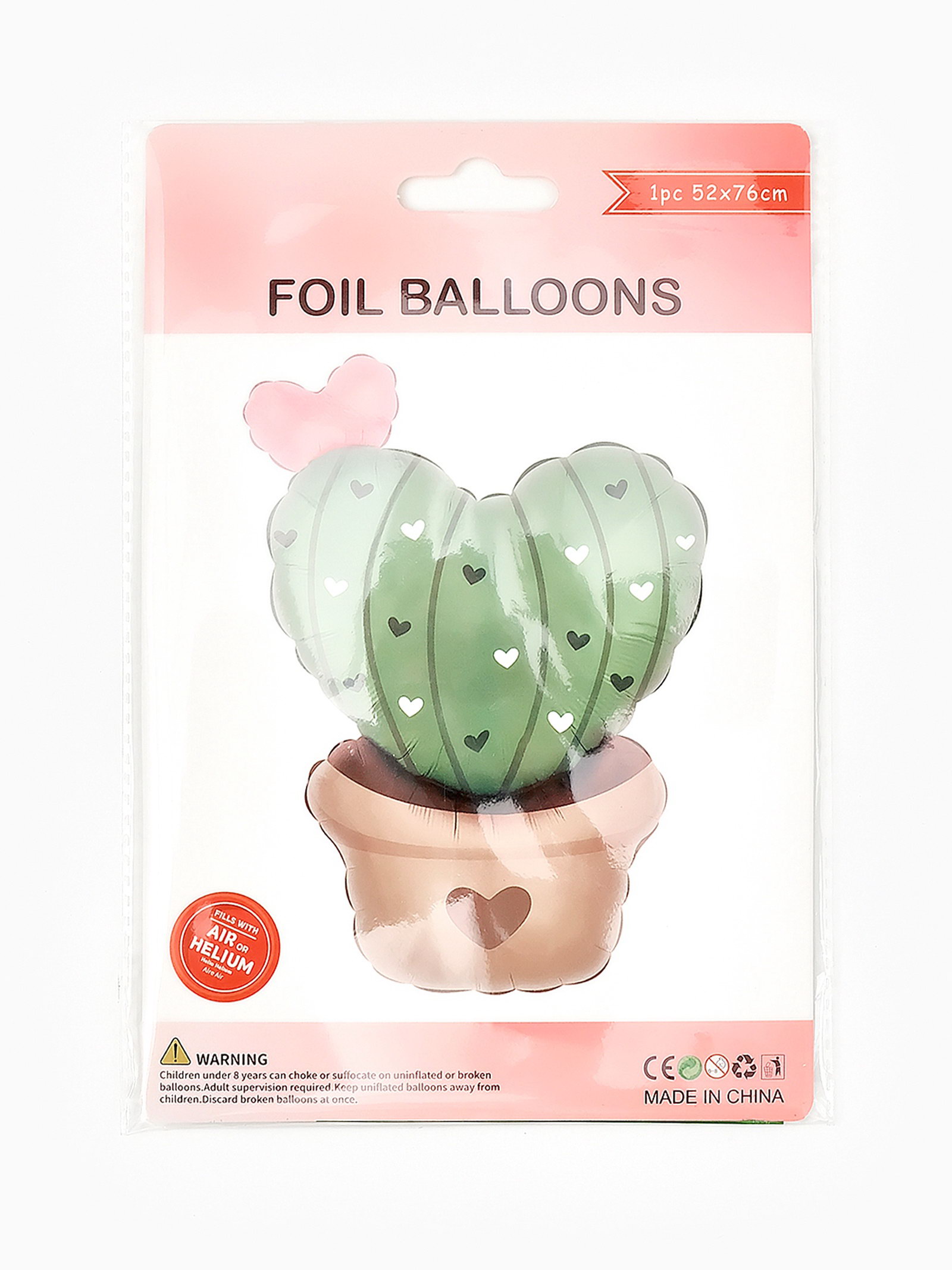 Воздушный шар фольгированный 30""Кактус сердечко", 52x76x0.1 см., Страна Карнавалия, Китай