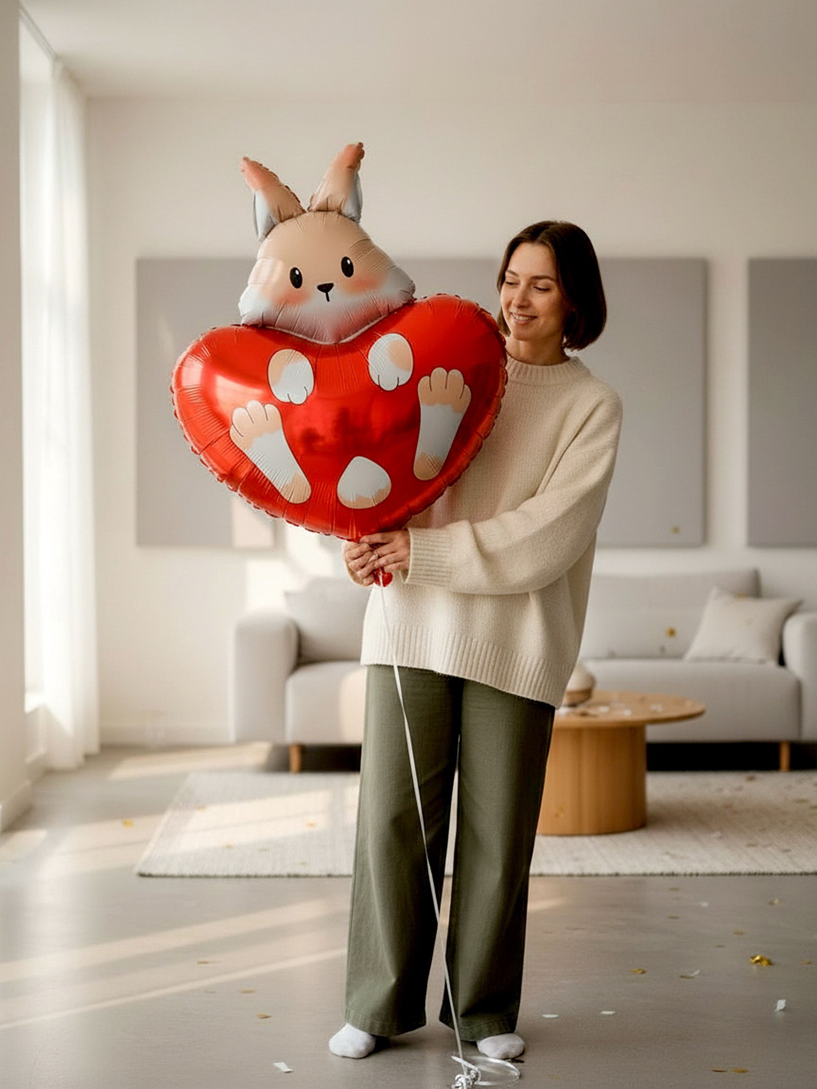 Надувка шара: Воздухом, Гелием Цвет: Бежевый, Красный Размер упаковки: 13.5 x 0.3 x 20 см. tnved: 9503010000 Адресат: Без адресата Набор: Нет Оттенок: Глянец Рисунок: Да Наличие клапана: Да Вид шара: Фигура Тематика рисунка: Любовь Индивидуальная упаковка: Нет Диаметр, дюйм: 30 Фольгированный шар "Зайка с сердцем" это отличный выбор для украшения дома, ресторана на торжество. Благодаря своему дизайну шар будет привлекать внимание и создавать нужное настроение на празднике. Преимущества