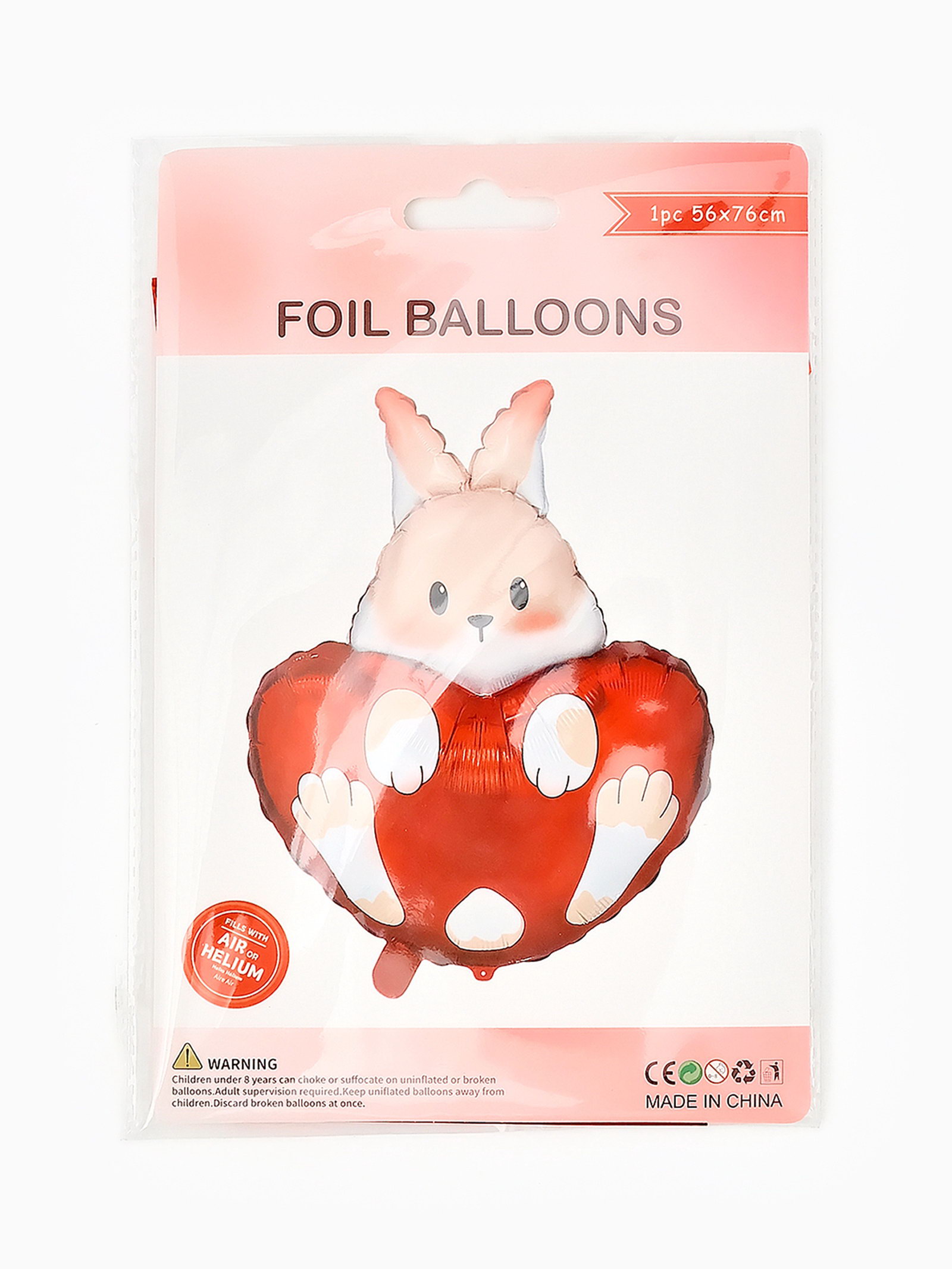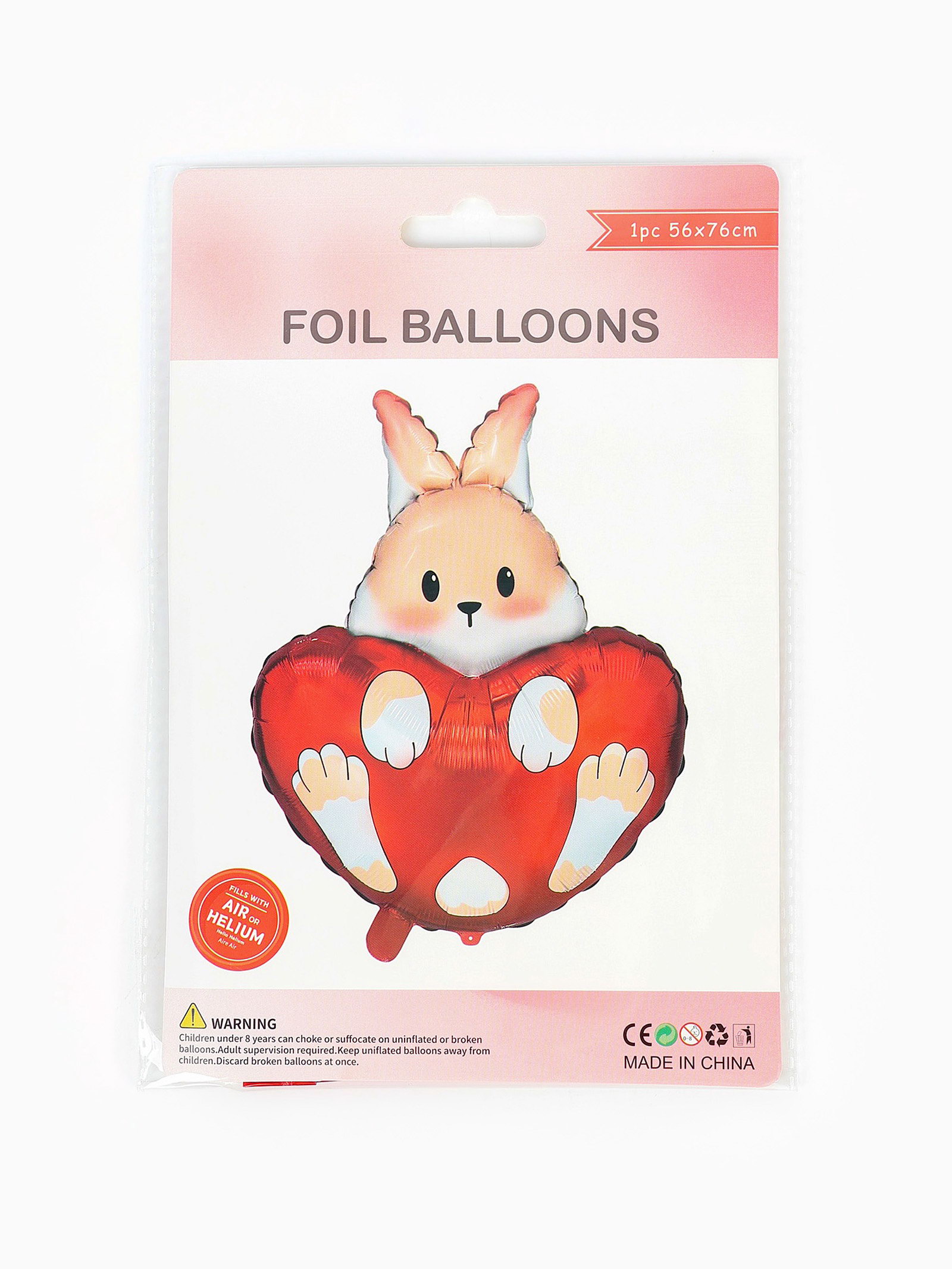 Воздушный шар фольгированный 30""Зайка с сердцем", 56x76x0.1 см., Страна Карнавалия, Китай