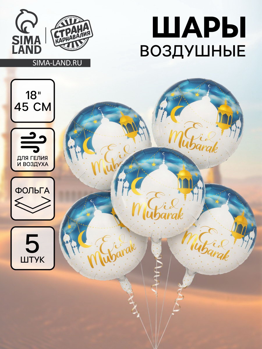 Воздушный шар фольгированный 18""Рамадан", набор 5 шт., 45x45x0.1 см., Страна Карнавалия, Китай