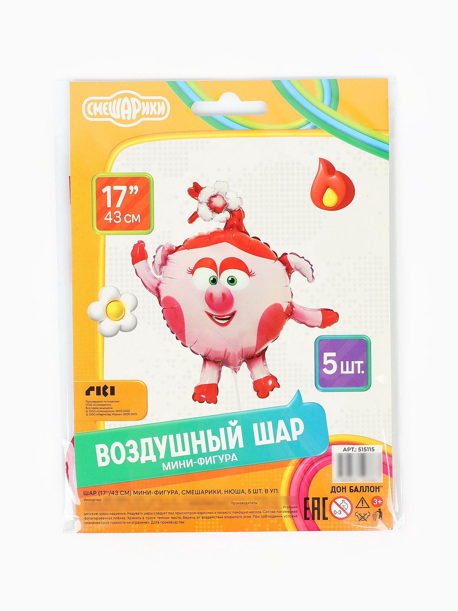 Воздушный шар фольгированный 17""Нюша. Смешарики", набор 5 шт., FALALI, Китай