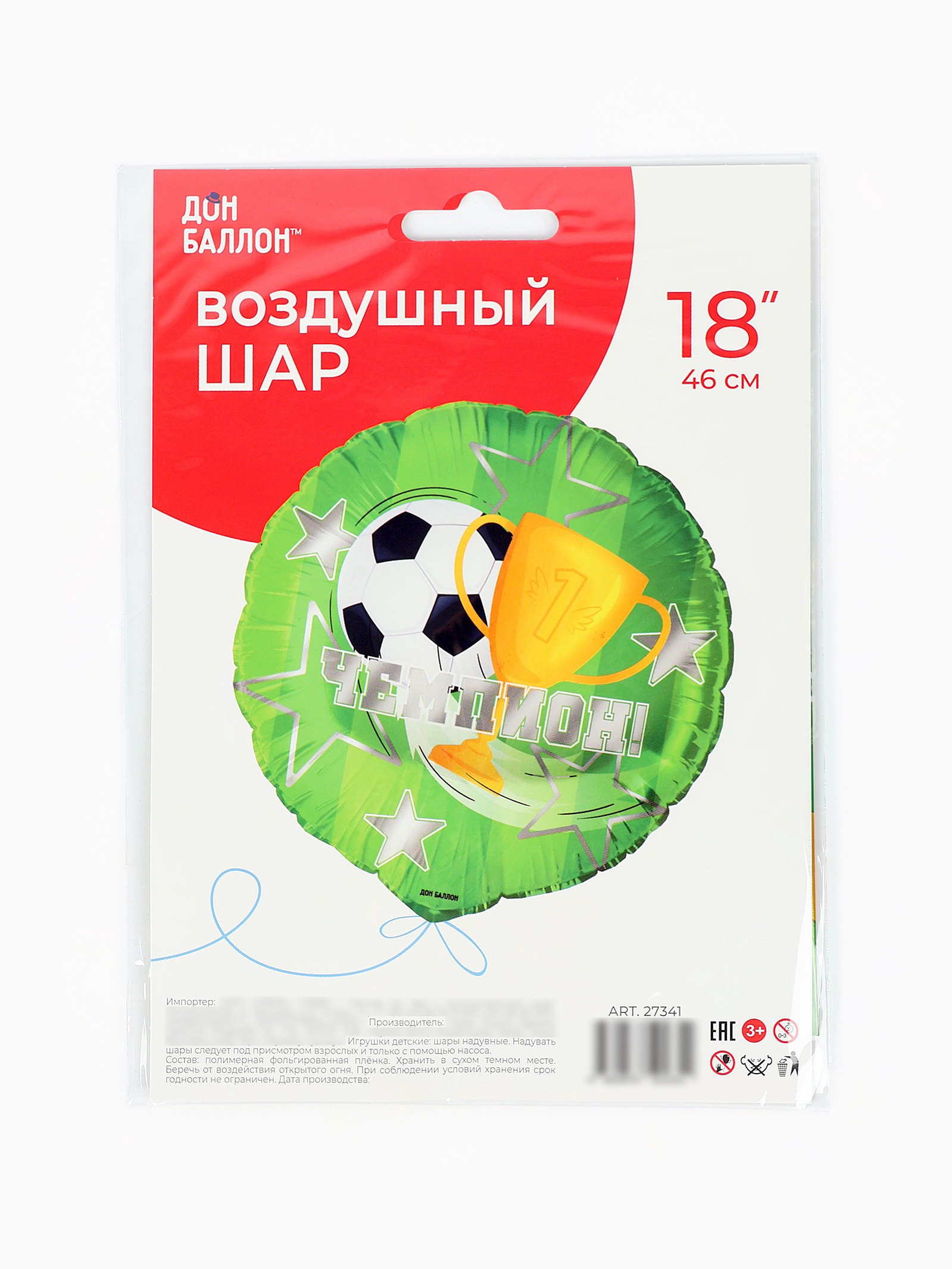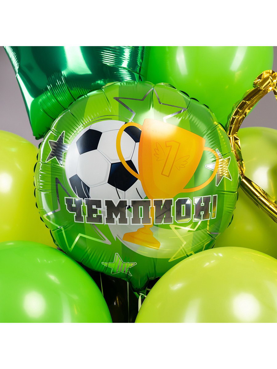 Надувка шара: Воздухом, Гелием Размер упаковки: 13.5 x 0.2 x 19 см. tnved: 9503010000 Набор: Нет Температурное ограничение: Нет Адресат: Спортсмену Тематика рисунка: Спорт Вид шара: Круг Диаметр, дюйм: 18 Наличие клапана: Да Цвет: Зелёный Оттенок: Глянец Индивидуальная упаковка: Нет Рисунок: Да Фольгированный шар "Чемпион" это отличный выбор для украшения дома, ресторана на торжество. Благодаря своему дизайну шар будет привлекать внимание и создавать нужное настроение на празднике. Преимущества