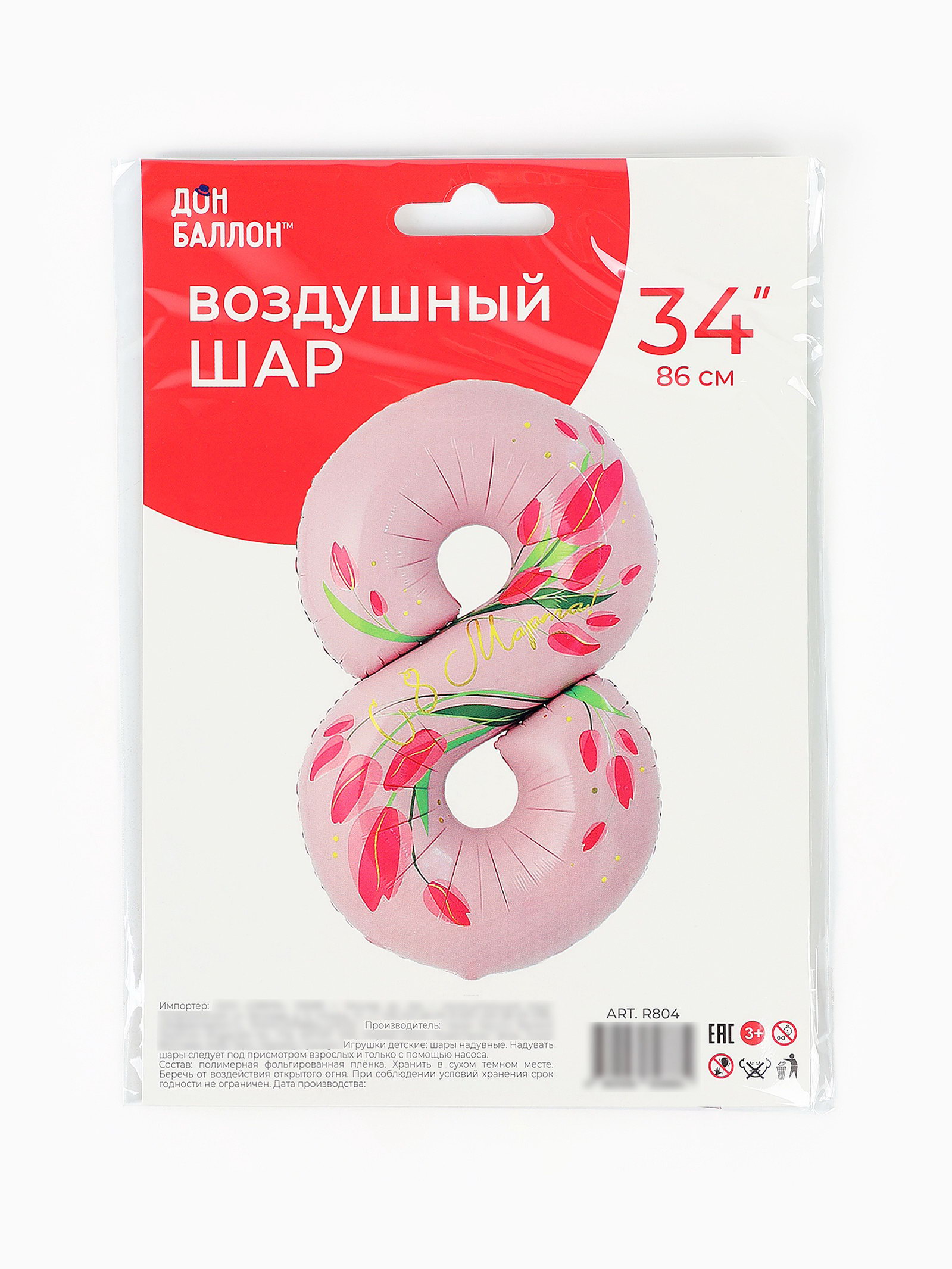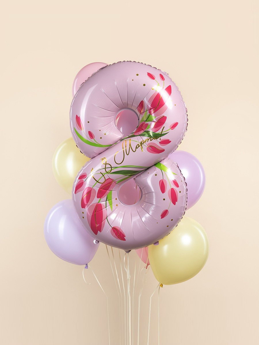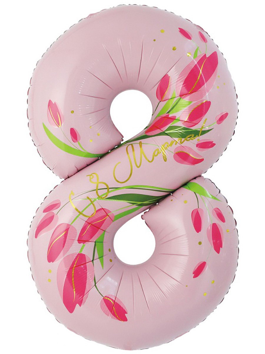 Воздушный шар фольгированный 34""8 Марта. Тюльпаны", цифра, FALALI, Китай
