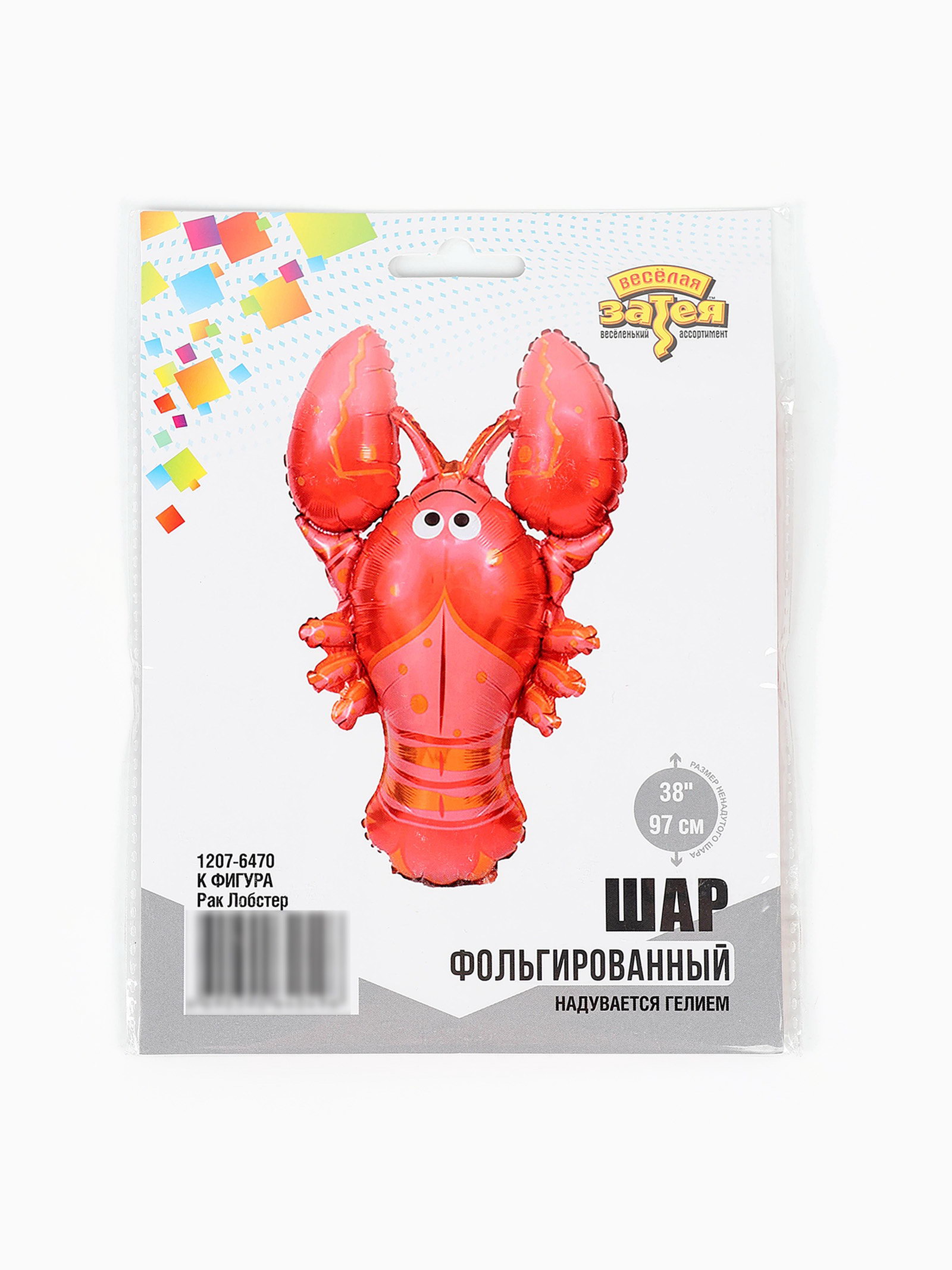 Воздушный шар фольгированный 38""Лобстер", Весёлая Затея, Китай