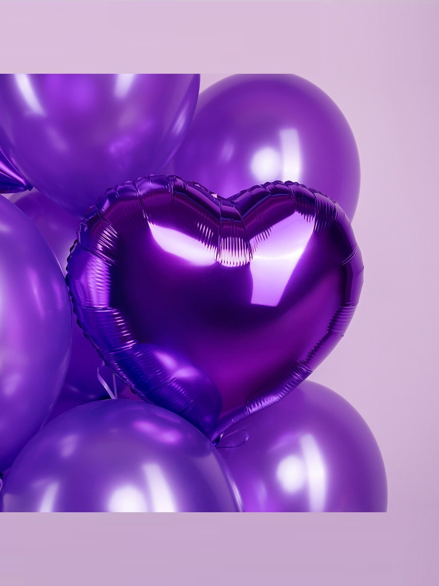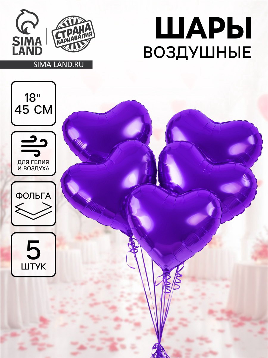 Воздушный шар фольгированный 18""Сердце фиолетовое", набор 5 шт., 15x20x0.3 см., Страна Карнавалия, Китай